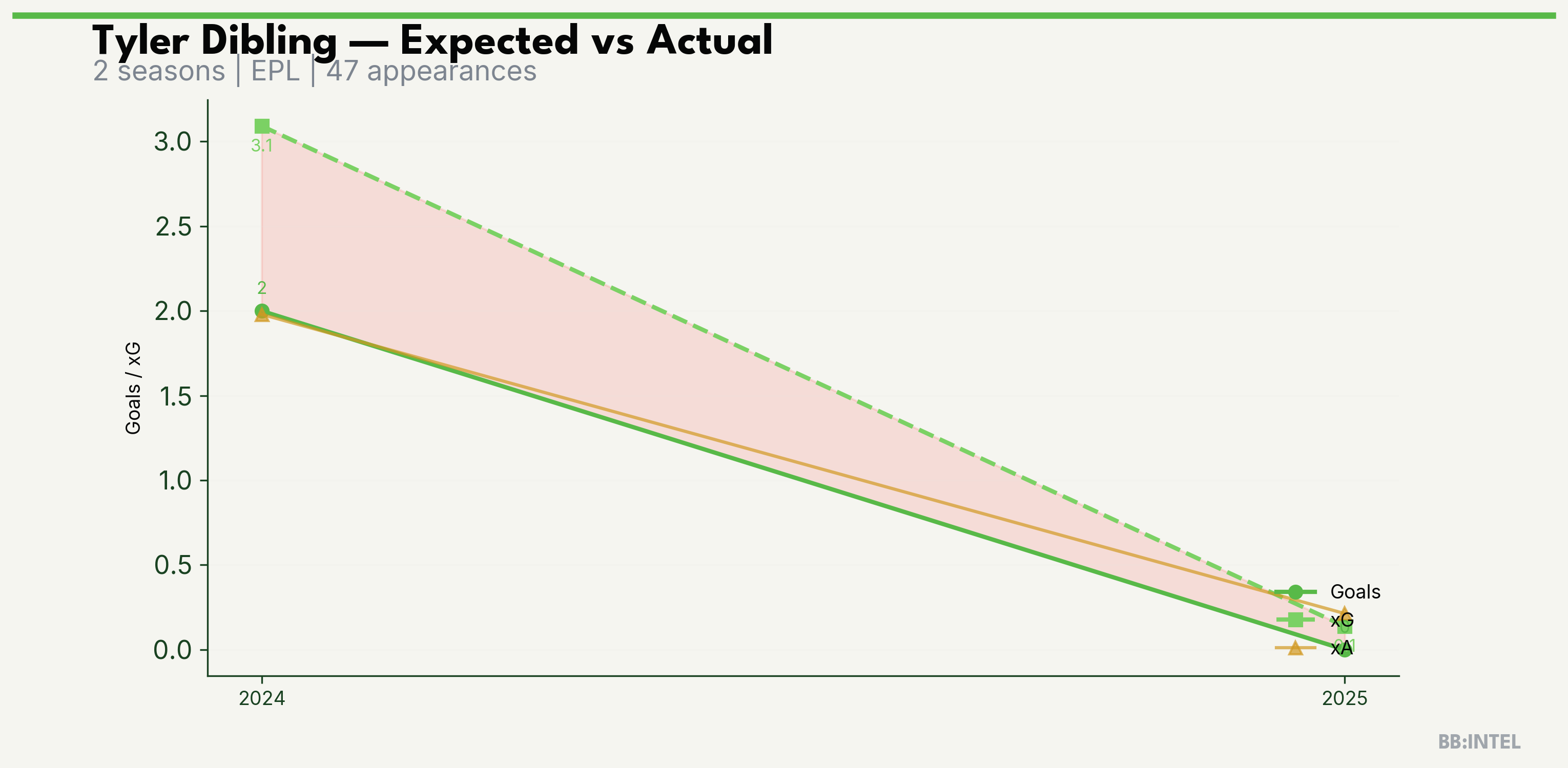 | 2024/2025 | EPL | 33 | 2 | 3.1 | 2.0 | 28 | -1.1 |