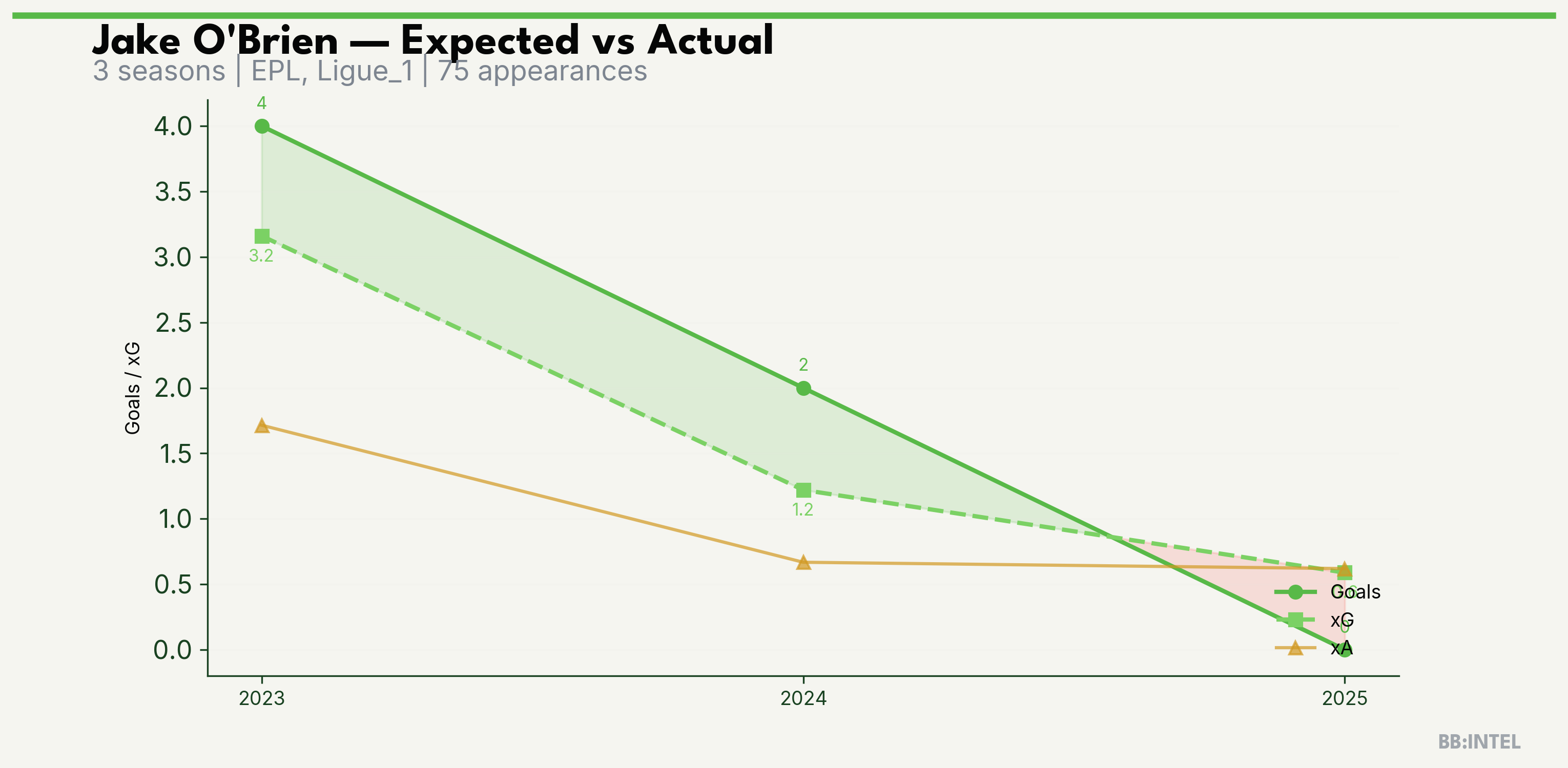 | 2024/2025 | EPL | 20 | 2 | 1.2 | 0.7 | 6 | +0.8 |