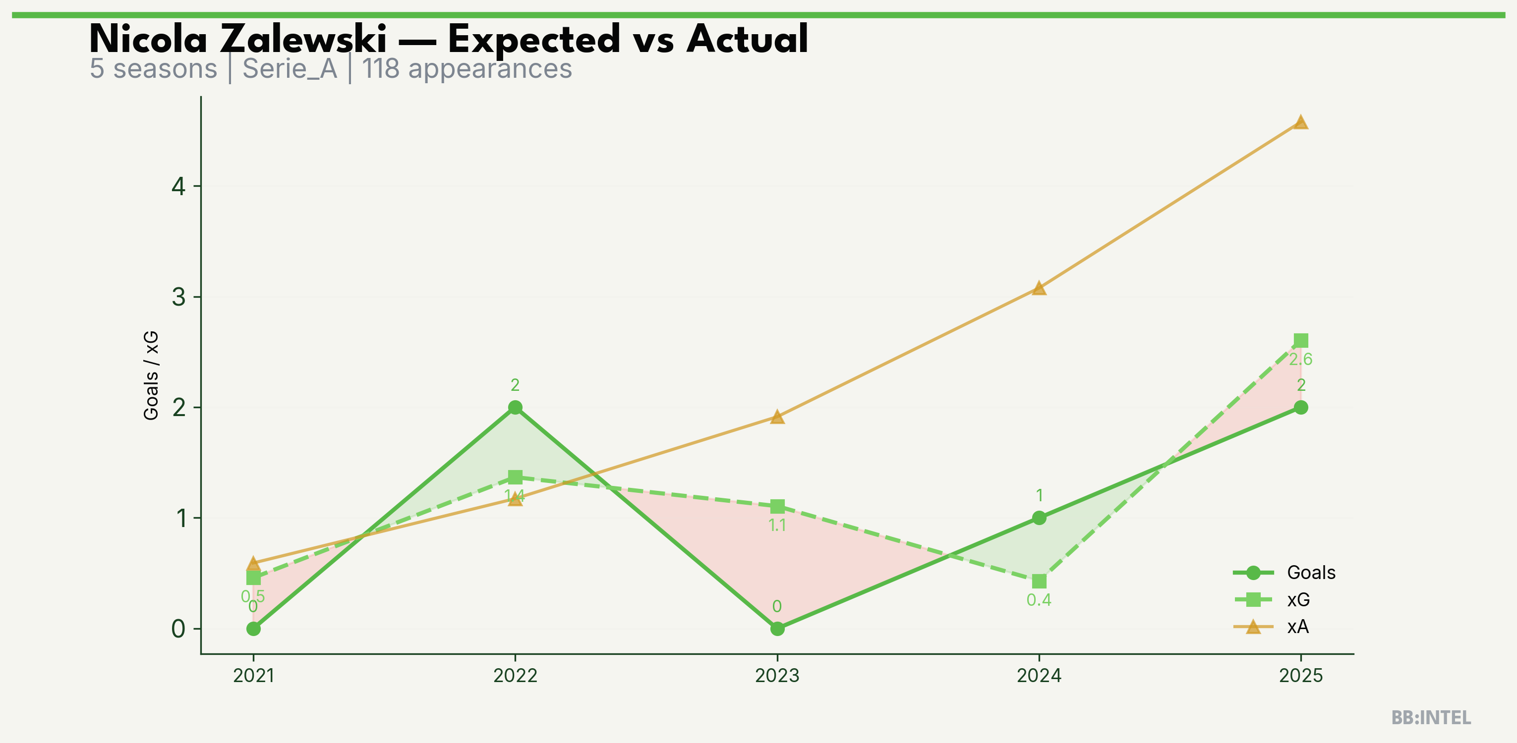| 2024/2025 | Serie_A | 23 | 1 | 0.4 | 3.1 | 10 | +0.6 |