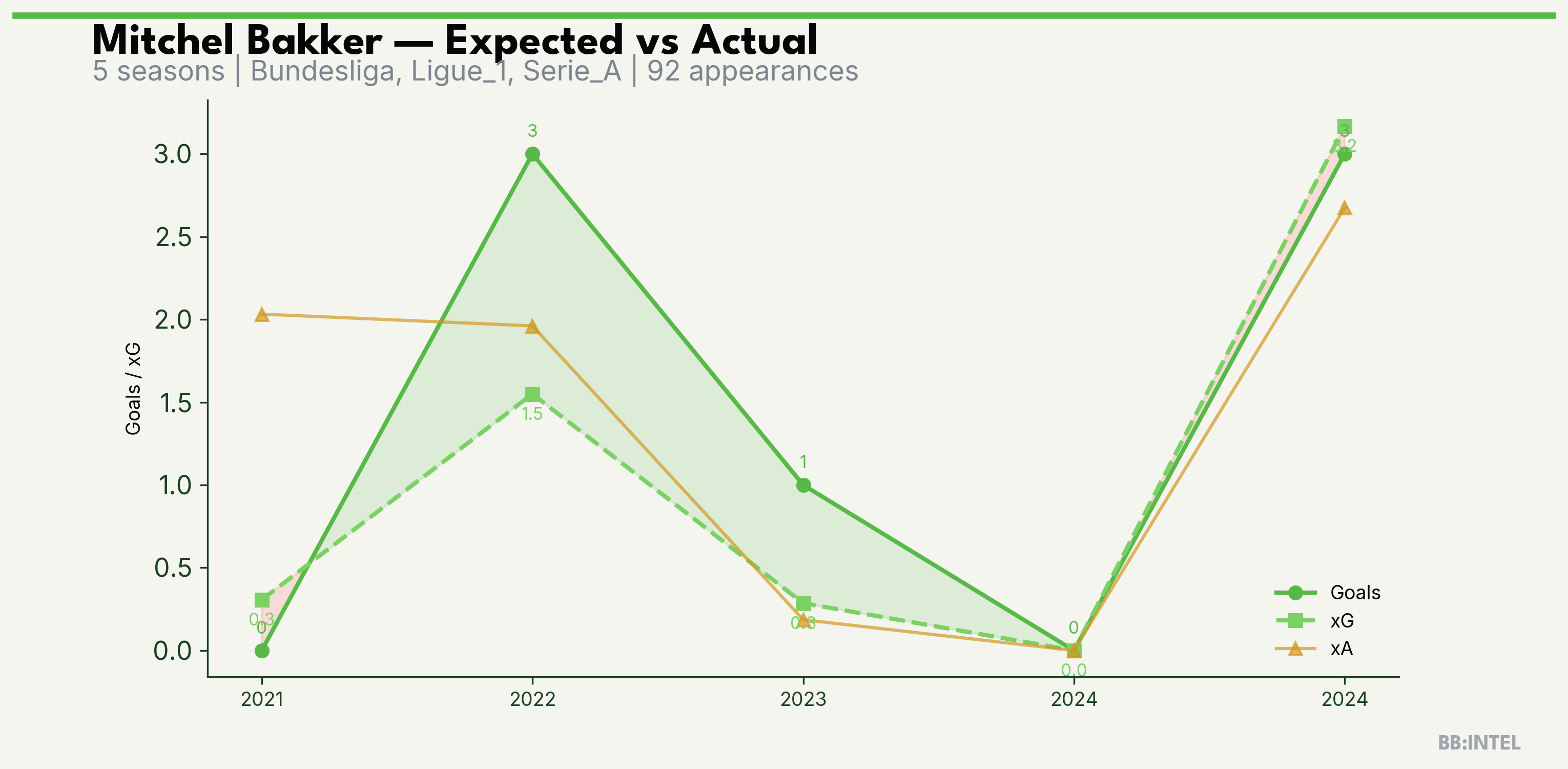 | 2022/2023 | Bundesliga | 28 | 3 | 1.5 | 2.0 | 17 | +1.5 |