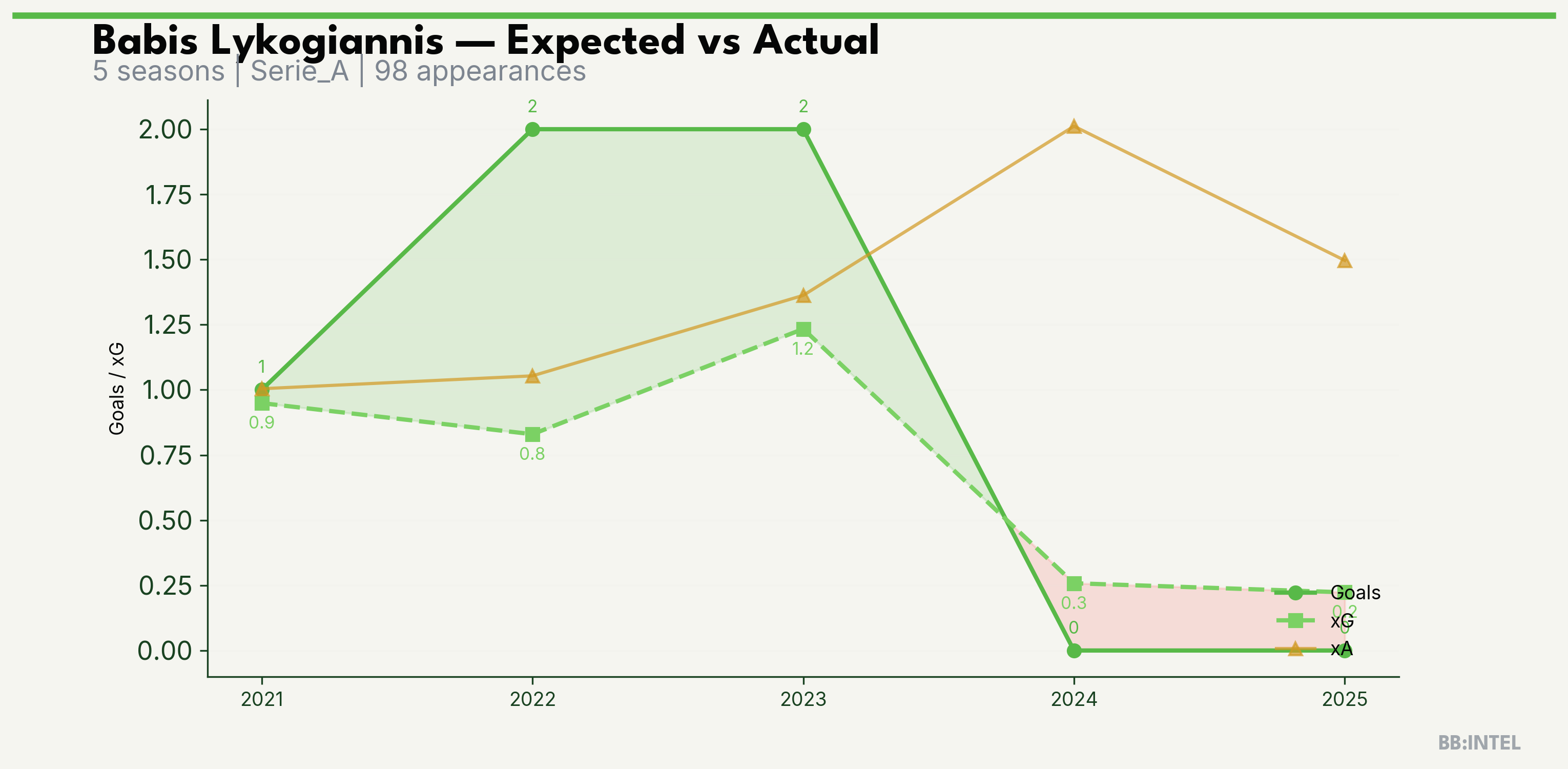 | 2023/2024 | Serie_A | 22 | 2 | 1.2 | 1.4 | 15 | +0.8 |