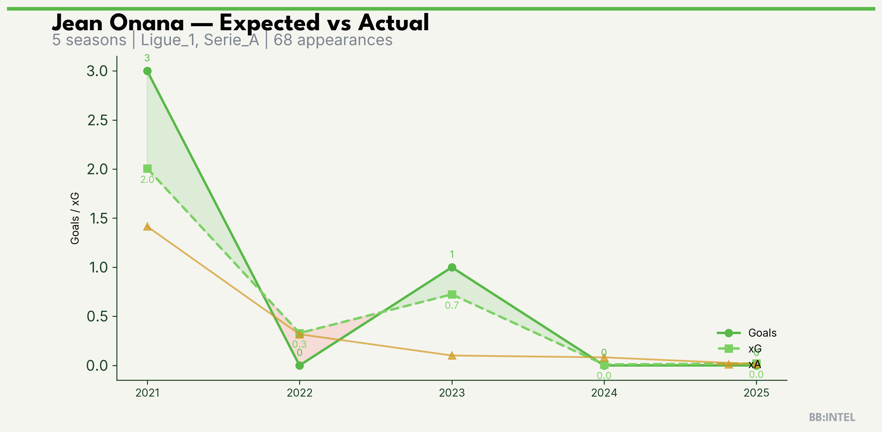 | 2021/2022 | Ligue_1 | 23 | 3 | 2.0 | 1.4 | 21 | +1.0 |