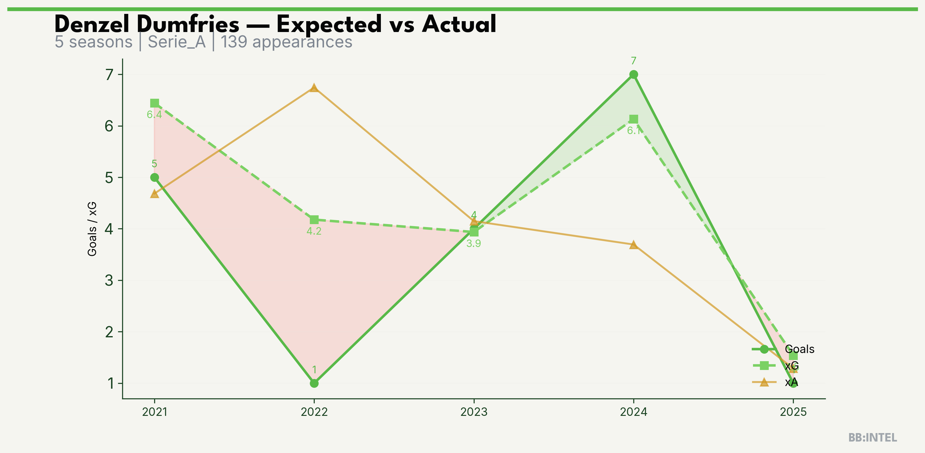 | 2024/2025 | Serie_A | 29 | 7 | 6.1 | 3.7 | 37 | +0.9 |