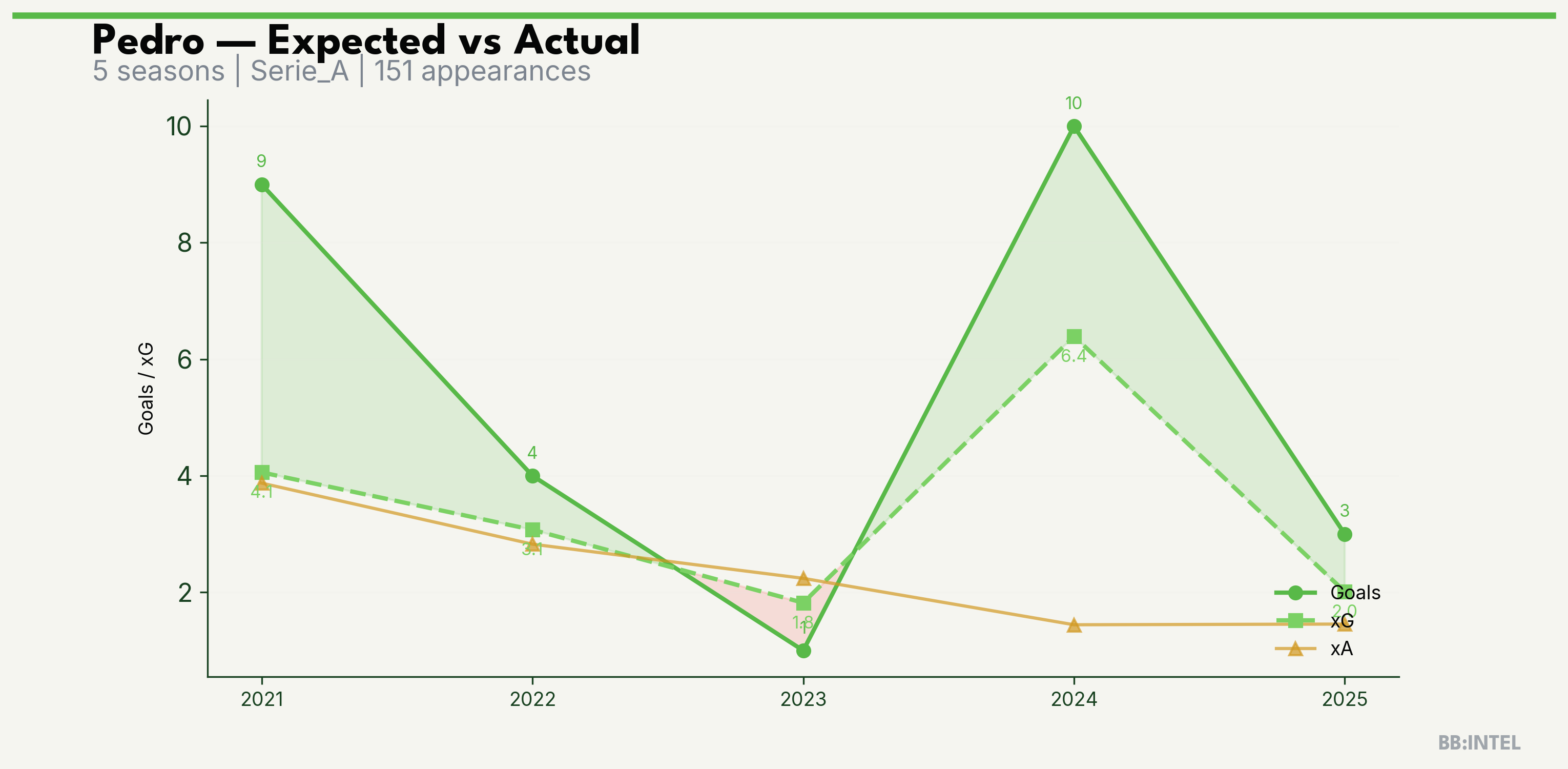 | 2024/2025 | Serie_A | 30 | 10 | 6.4 | 1.4 | 39 | +3.6 |