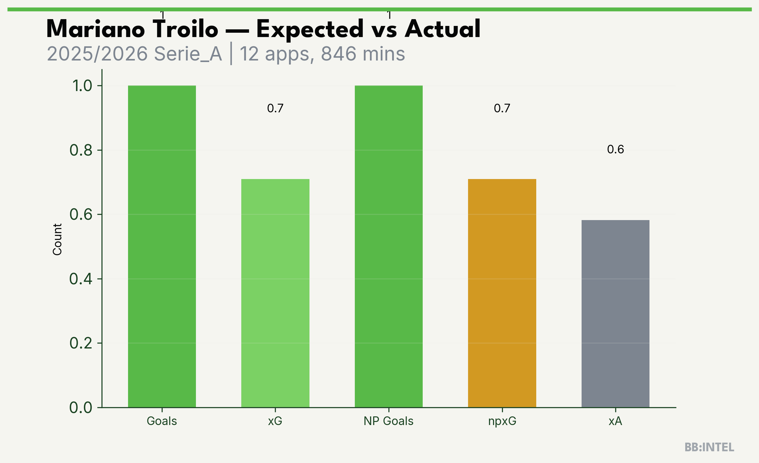 | 2025/2026 | Serie_A | 12 | 1 | 0.7 | 0.6 | 5 | +0.3 |