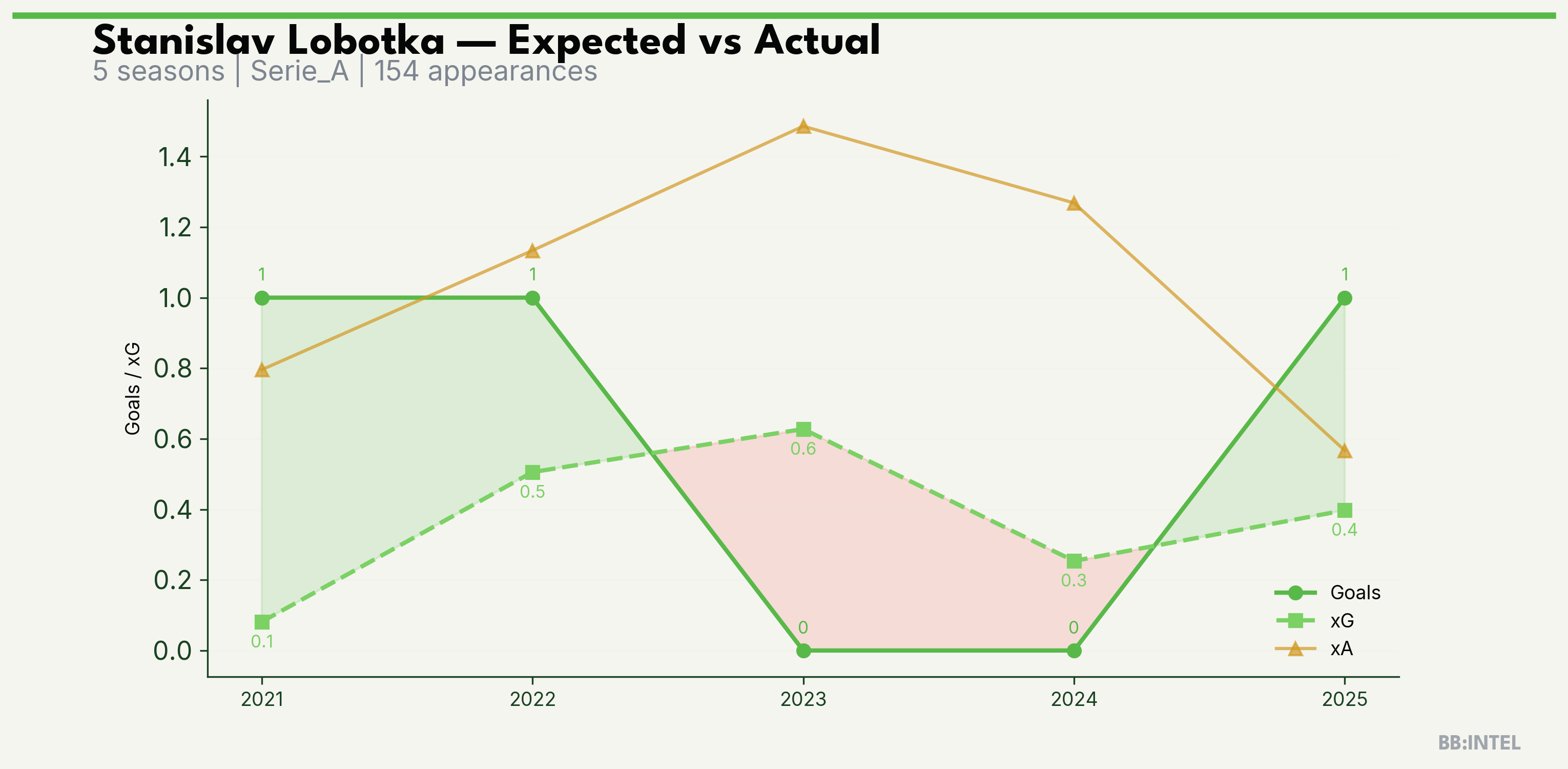 | 2025/2026 | Serie_A | 23 | 1 | 0.4 | 0.6 | 7 | +0.6 |