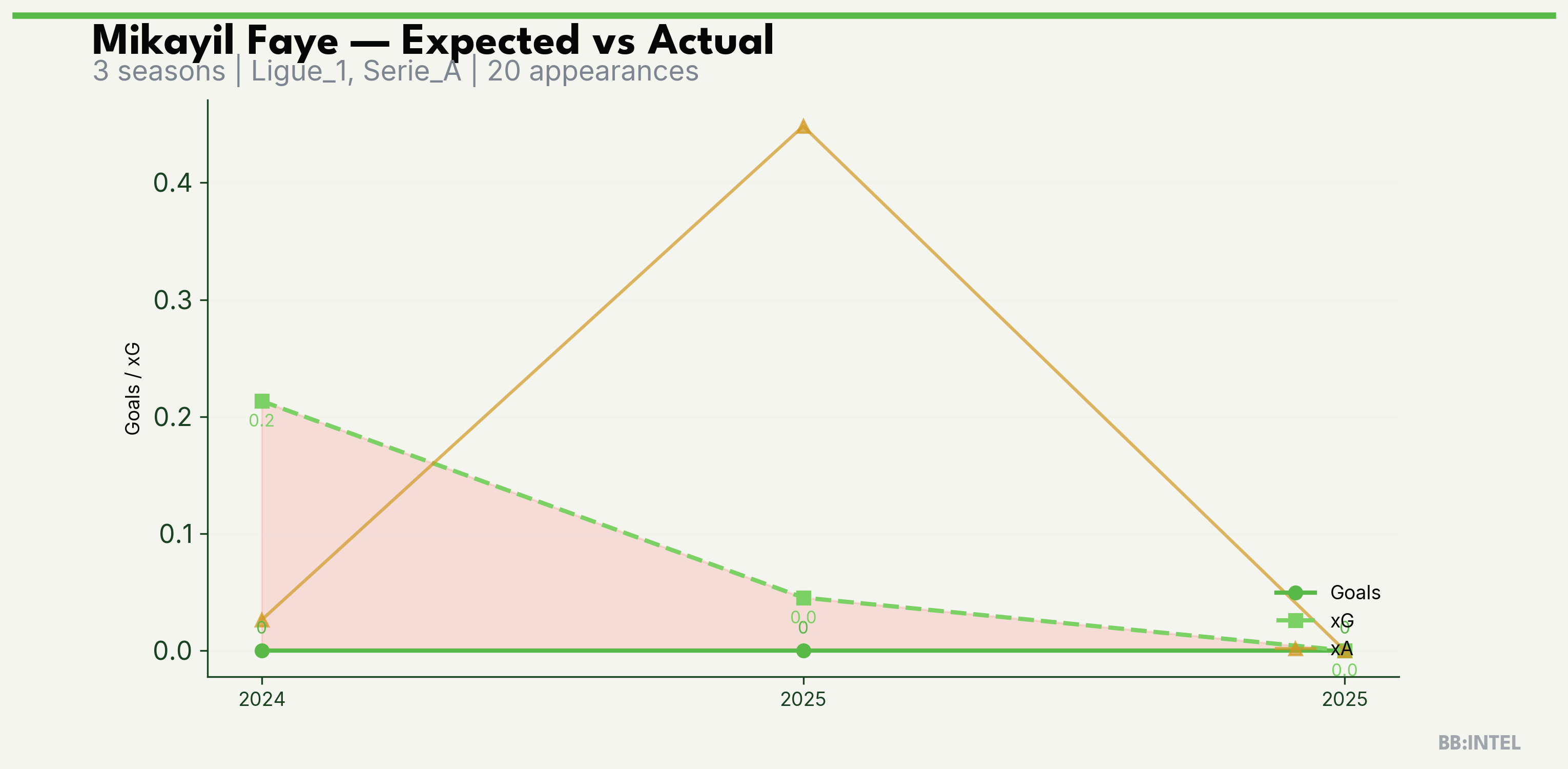 | 2024/2025 | Ligue_1 | 11 | 0 | 0.2 | 0.0 | 6 | -0.2 |