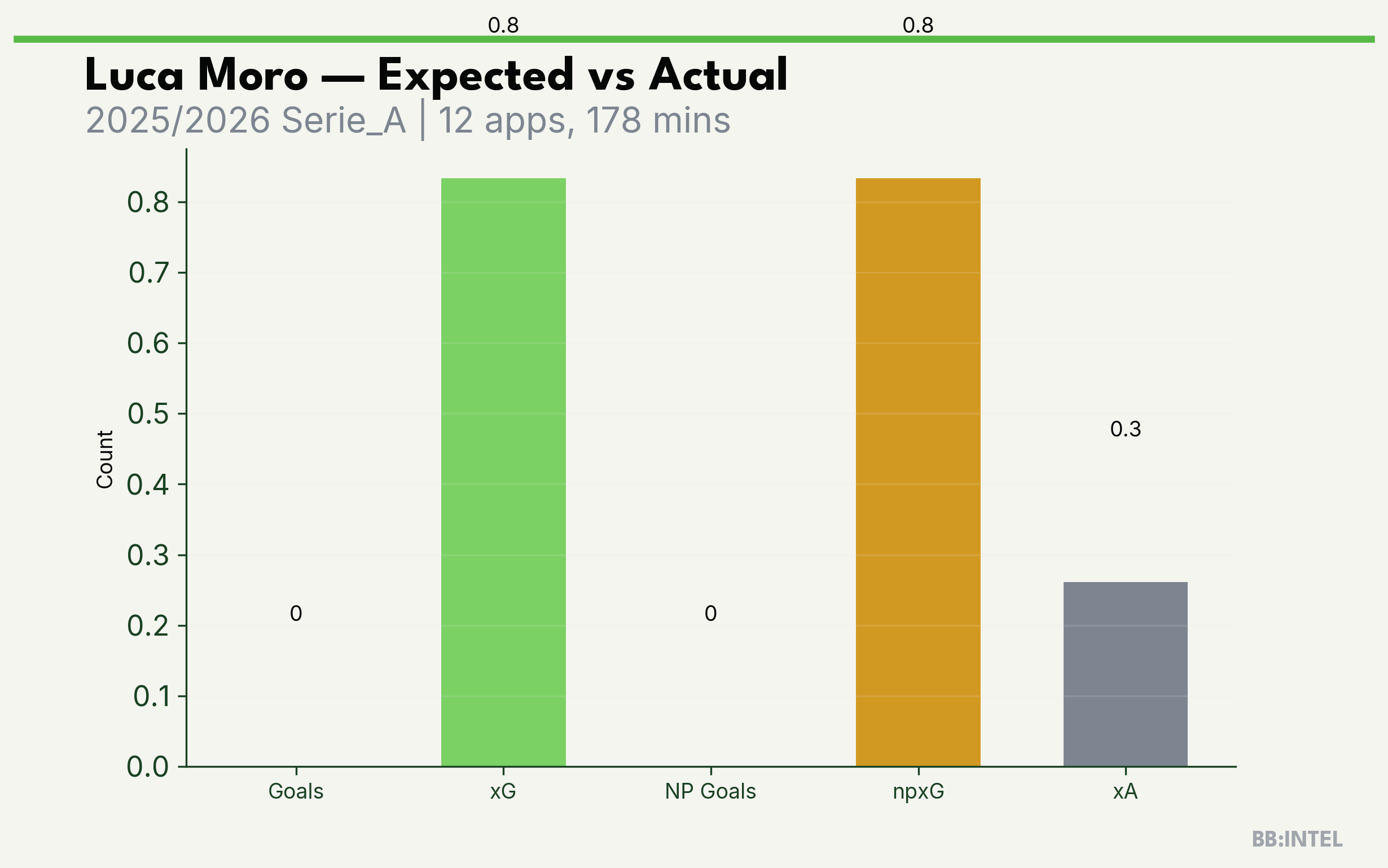 | 2025/2026 | Serie_A | 12 | 0 | 0.8 | 0.3 | 6 | -0.8 |
