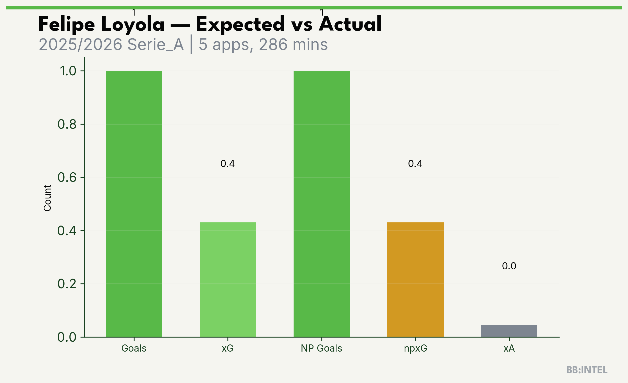 | 2025/2026 | Serie_A | 5 | 1 | 0.4 | 0.0 | 3 | +0.6 |