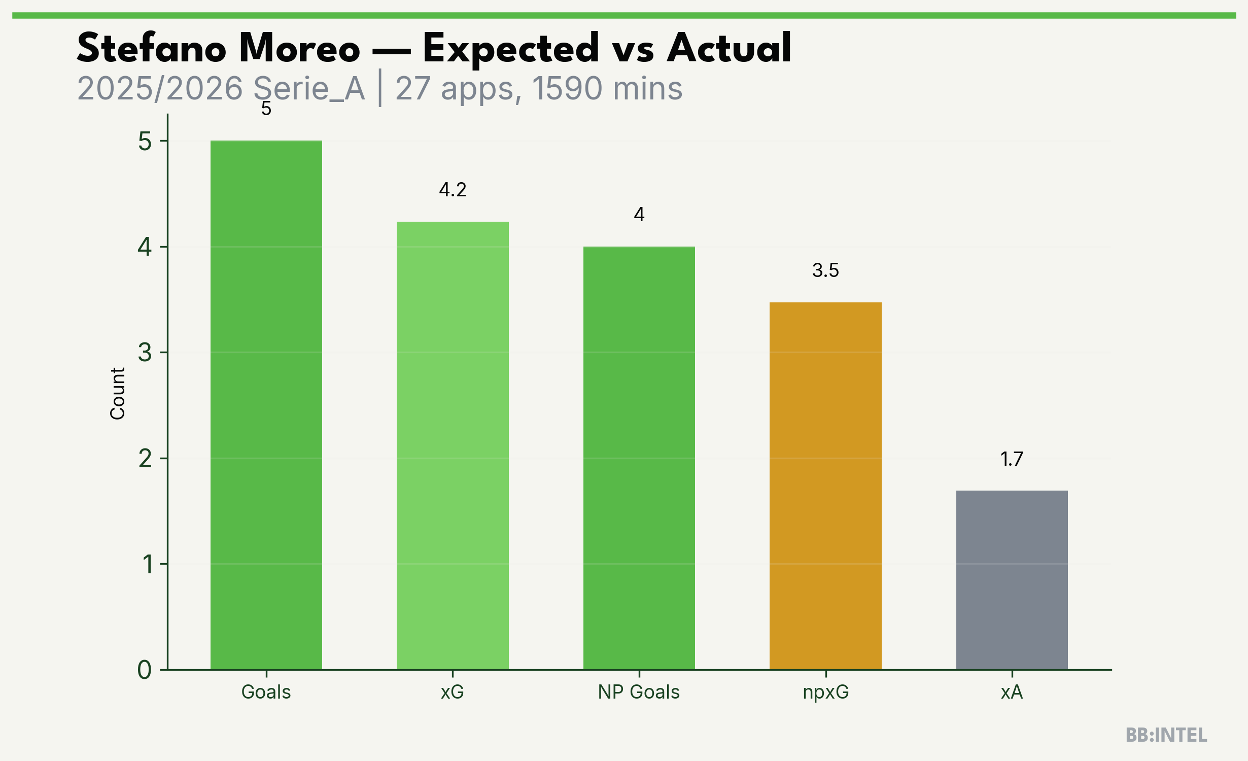 | 2025/2026 | Serie_A | 27 | 5 | 4.2 | 1.7 | 38 | +0.8 |