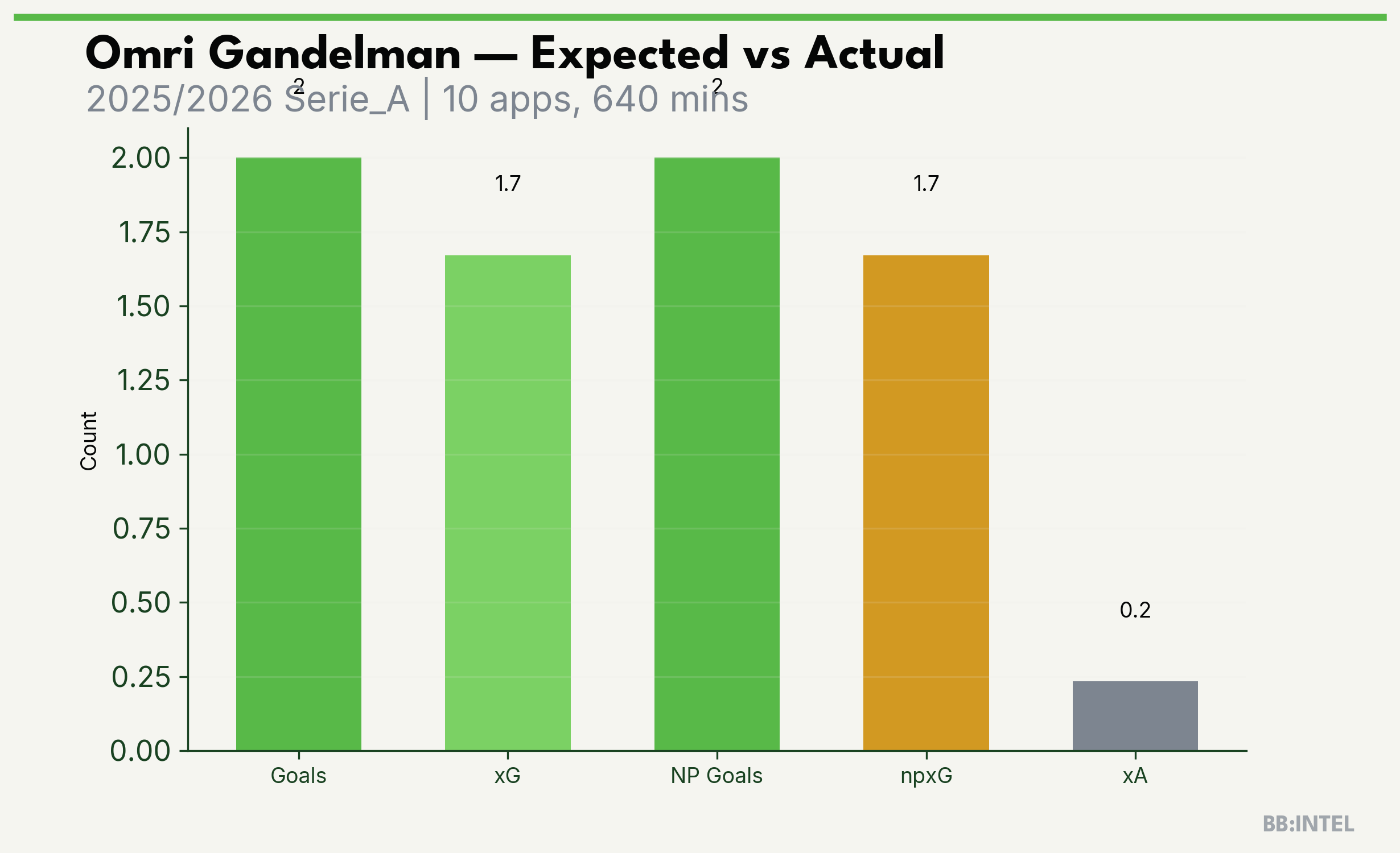 | 2025/2026 | Serie_A | 10 | 2 | 1.7 | 0.2 | 9 | +0.3 |