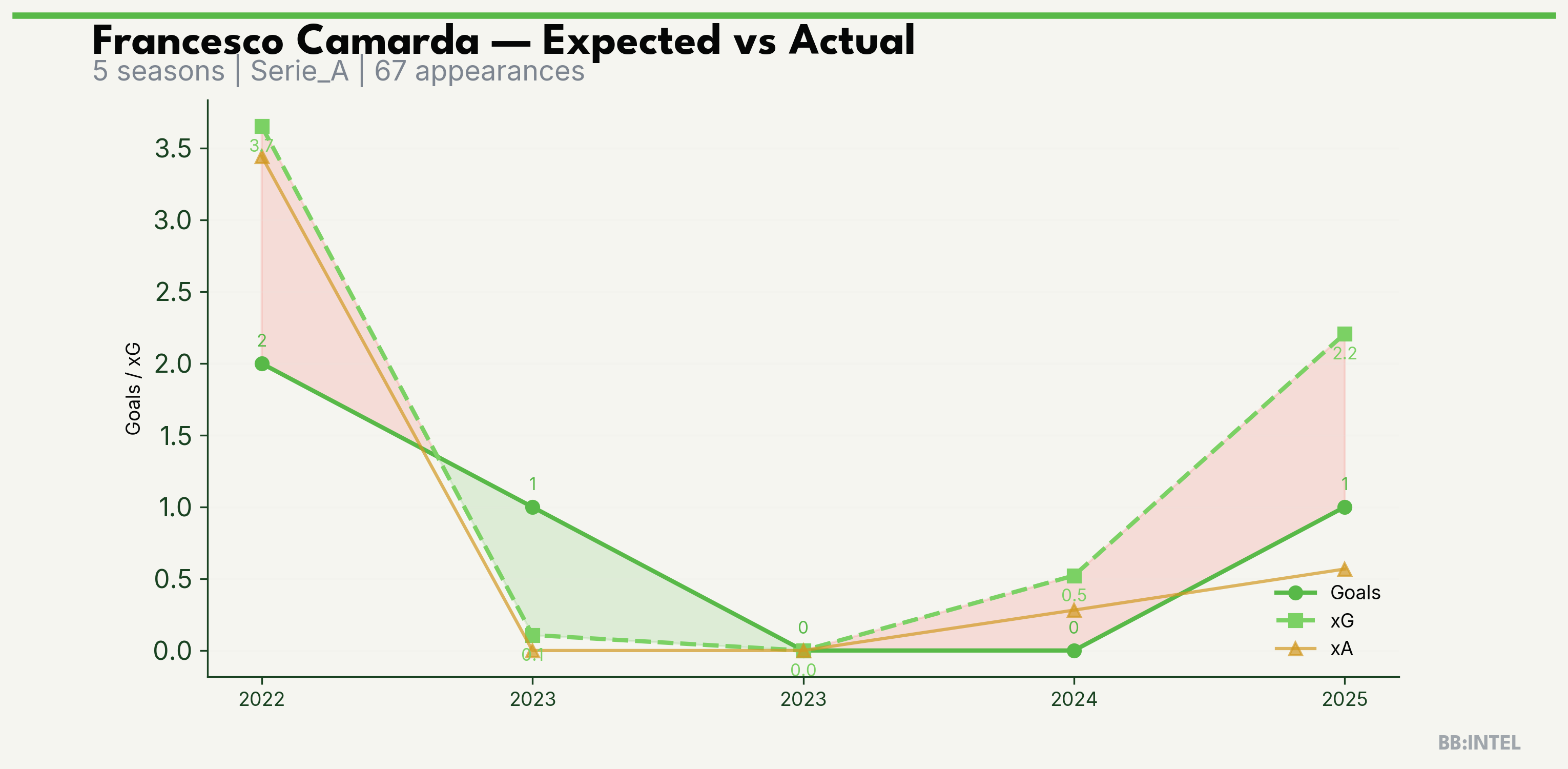 | 2023/2024 | Serie_A | 2 | 1 | 0.1 | 0.0 | 2 | +0.9 |