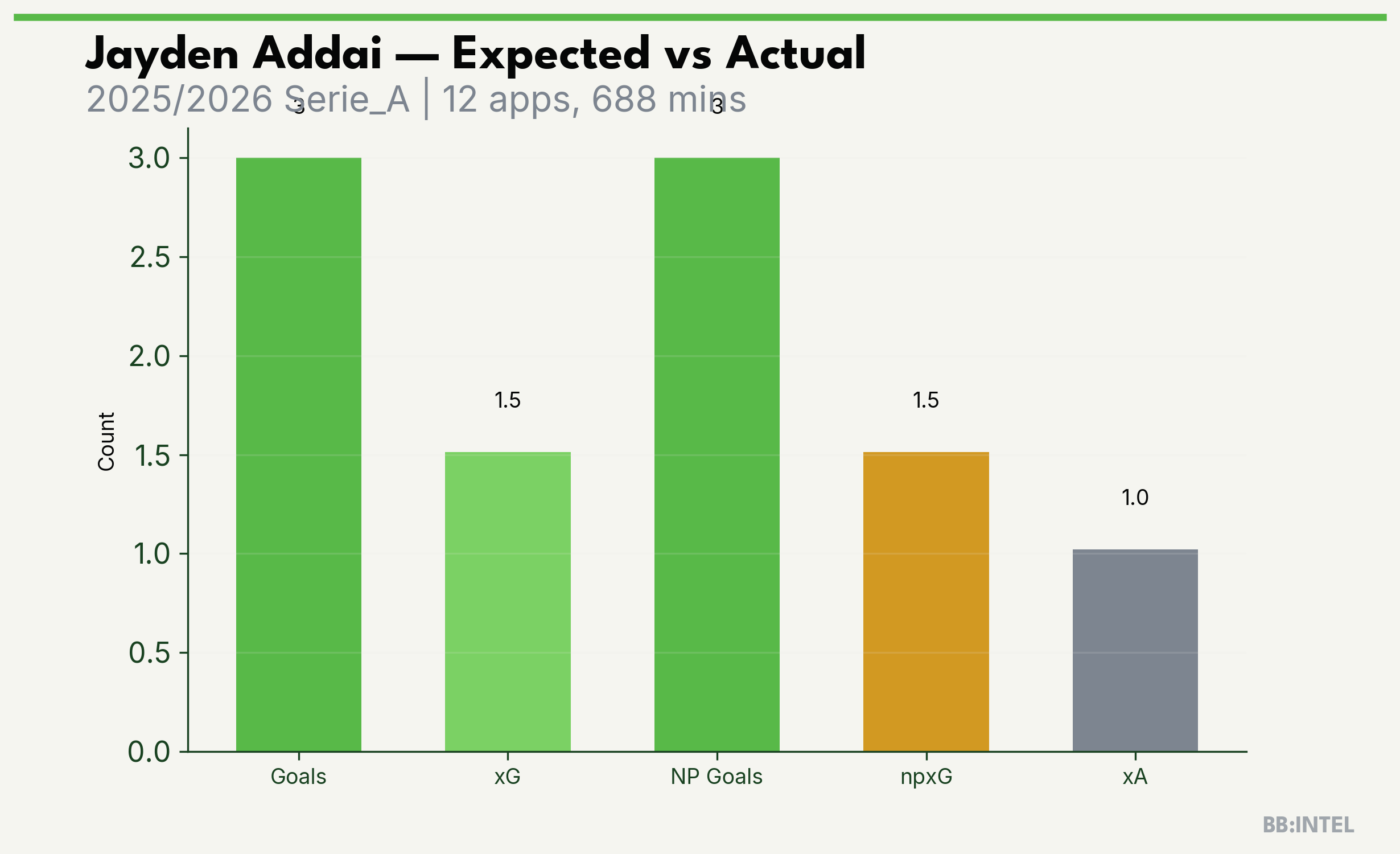 | 2025/2026 | Serie_A | 12 | 3 | 1.5 | 1.0 | 13 | +1.5 |
