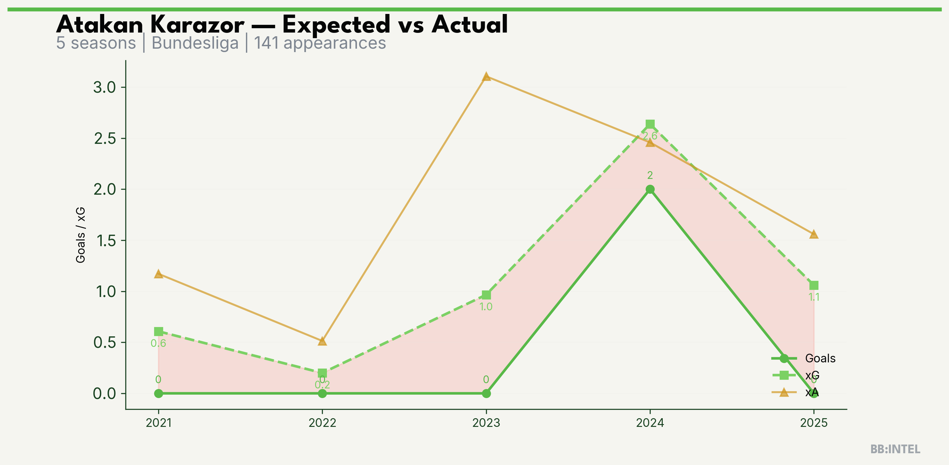 | 2024/2025 | Bundesliga | 32 | 2 | 2.6 | 2.5 | 15 | -0.6 |