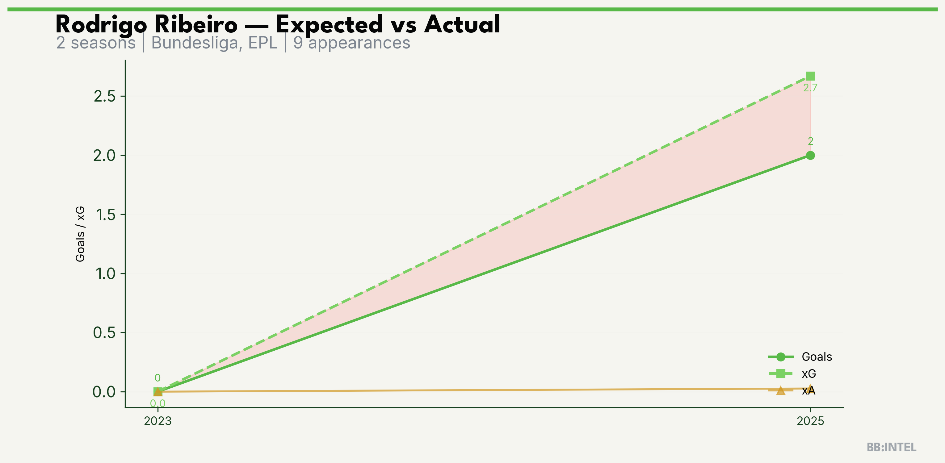 | 2025/2026 | Bundesliga | 5 | 2 | 2.7 | 0.0 | 14 | -0.7 |