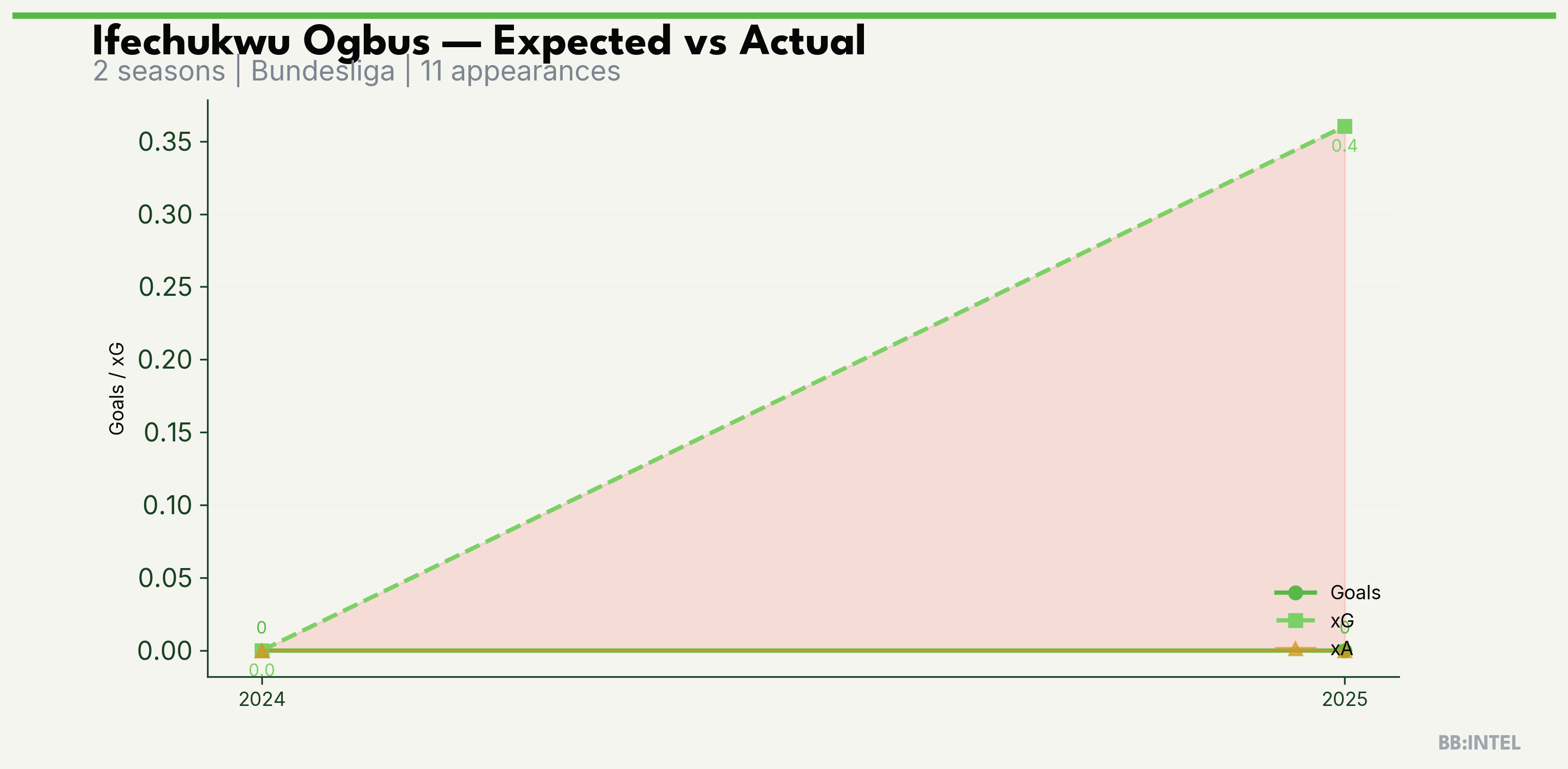 | 2025/2026 | Bundesliga | 9 | 0 | 0.4 | 0.0 | 4 | -0.4 |