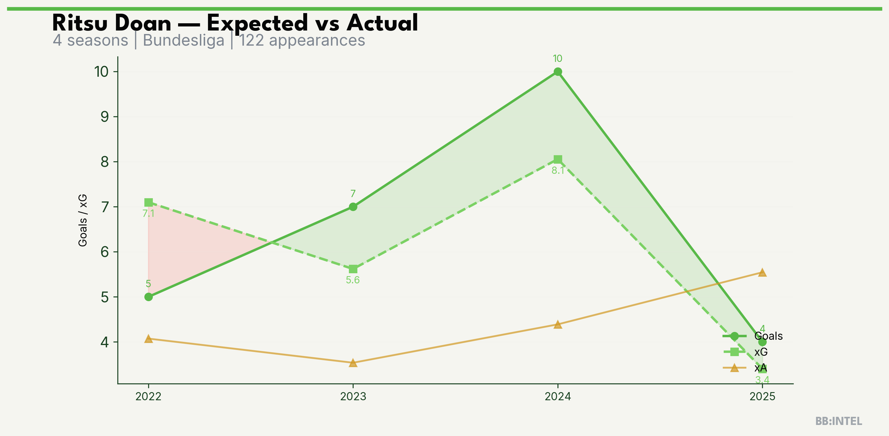 | 2025/2026 | Bundesliga | 25 | 4 | 3.4 | 5.5 | 30 | +0.6 |