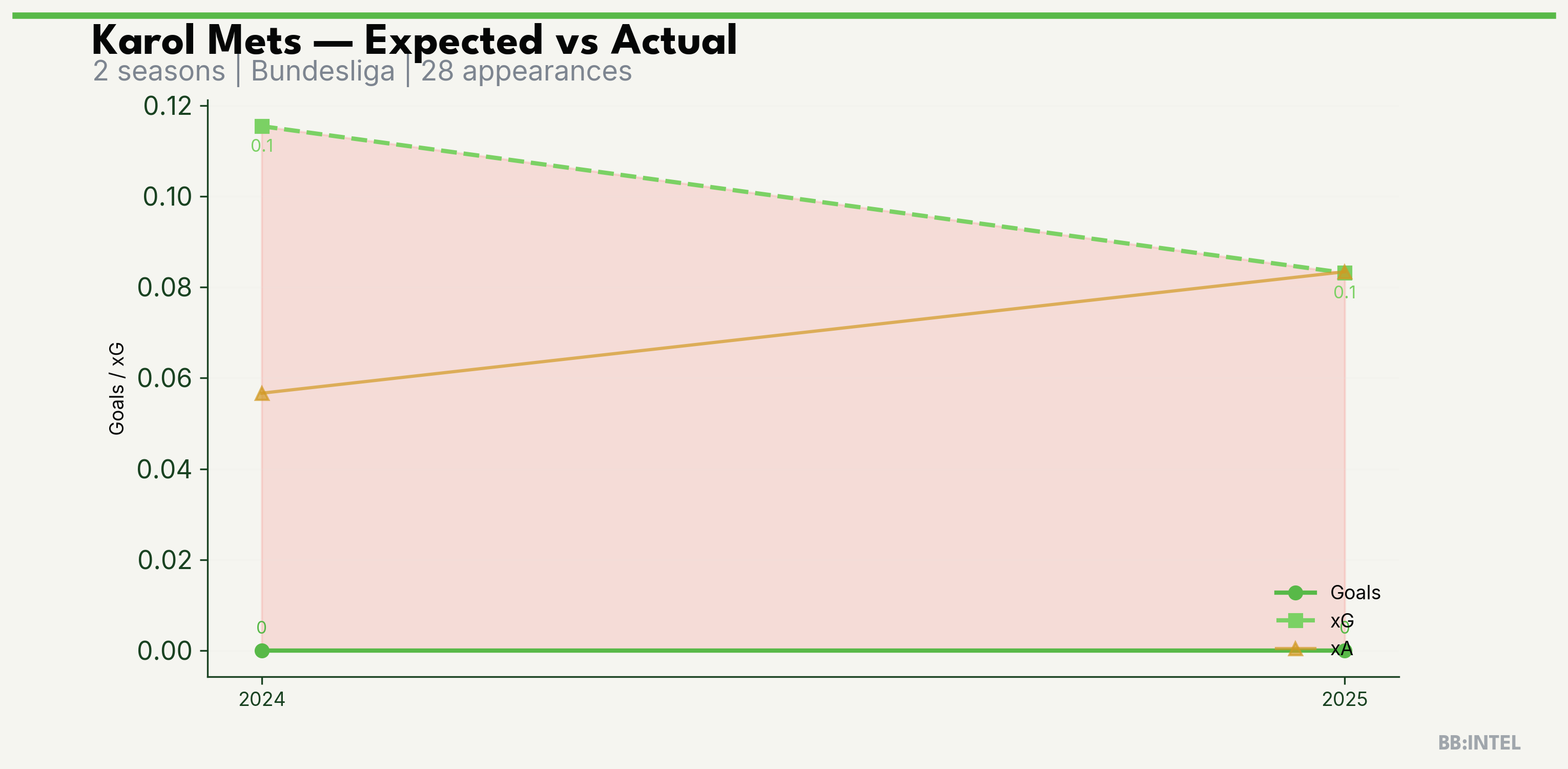 | 2025/2026 | Bundesliga | 18 | 0 | 0.1 | 0.1 | 3 | -0.1 |