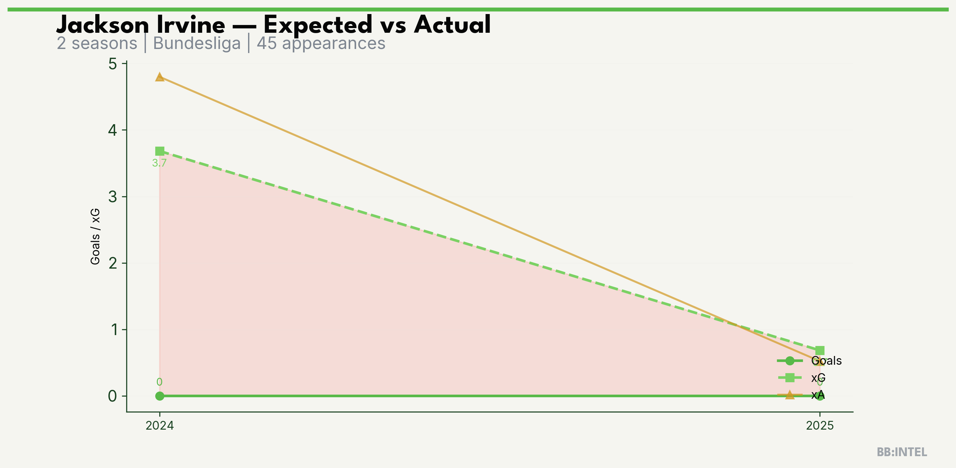 | 2024/2025 | Bundesliga | 29 | 0 | 3.7 | 4.8 | 41 | -3.7 |