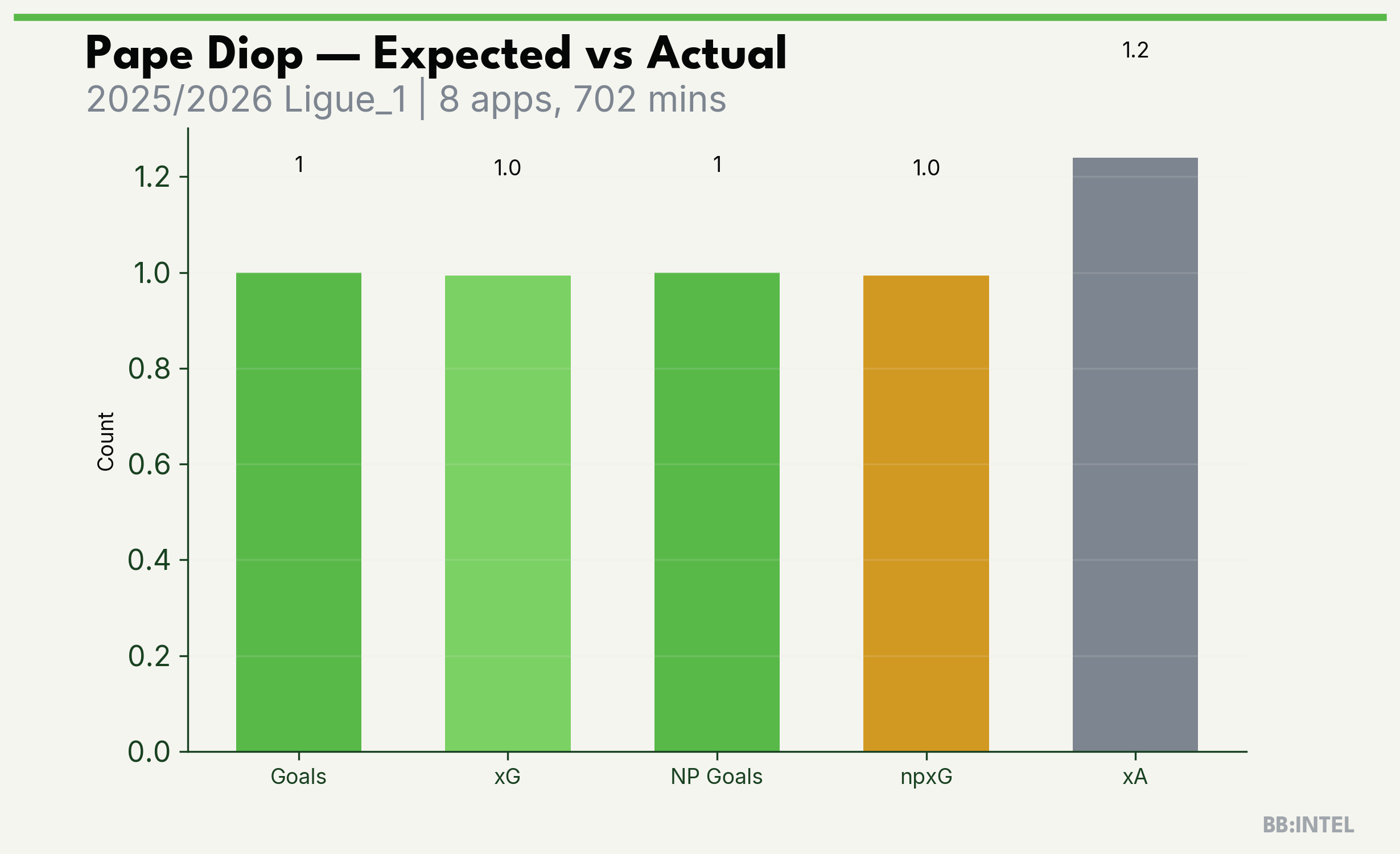 | 2025/2026 | Ligue_1 | 8 | 1 | 1.0 | 1.2 | 21 | +0.0 |