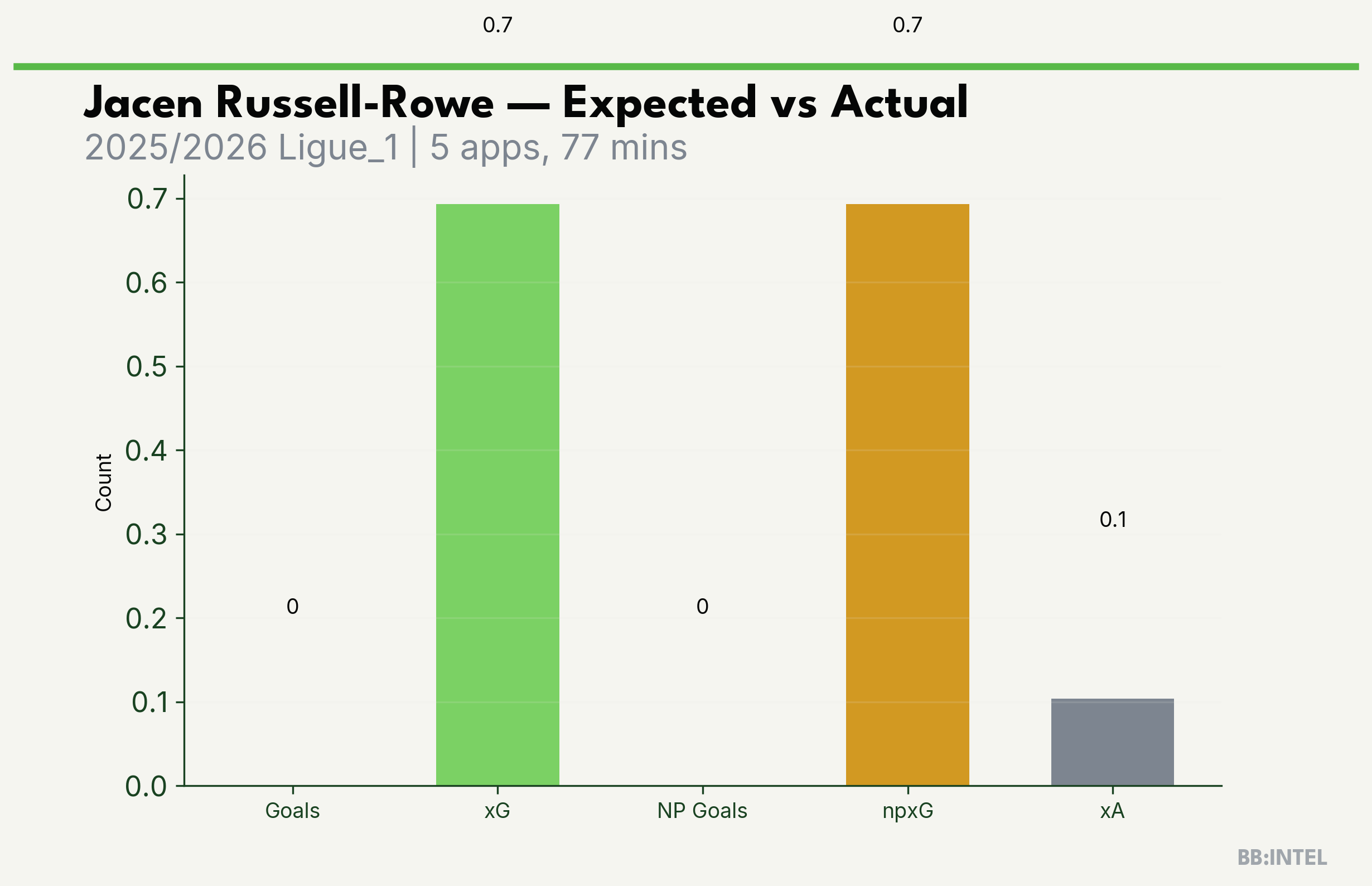 | 2025/2026 | Ligue_1 | 5 | 0 | 0.7 | 0.1 | 4 | -0.7 |