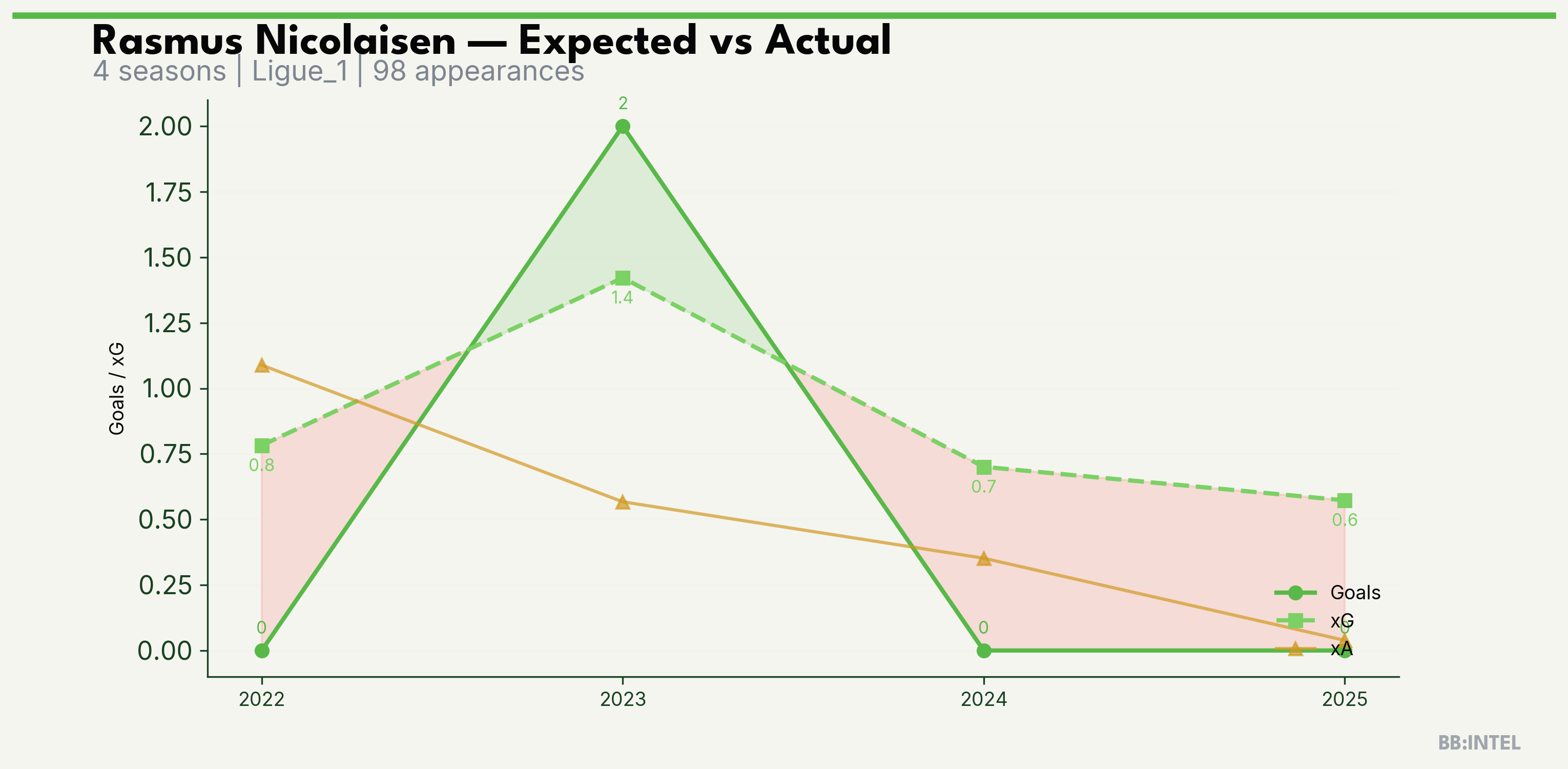 | 2025/2026 | Ligue_1 | 24 | 0 | 0.6 | 0.0 | 12 | -0.6 |