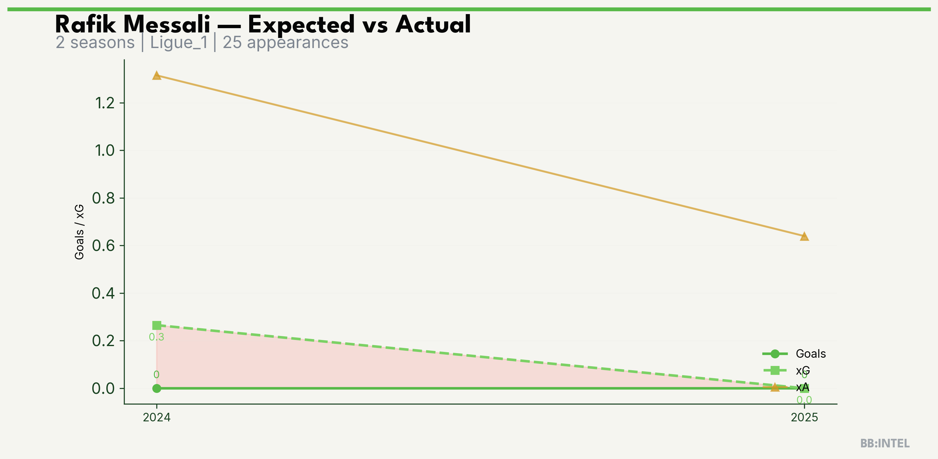 | 2024/2025 | Ligue_1 | 13 | 0 | 0.3 | 1.3 | 4 | -0.3 |