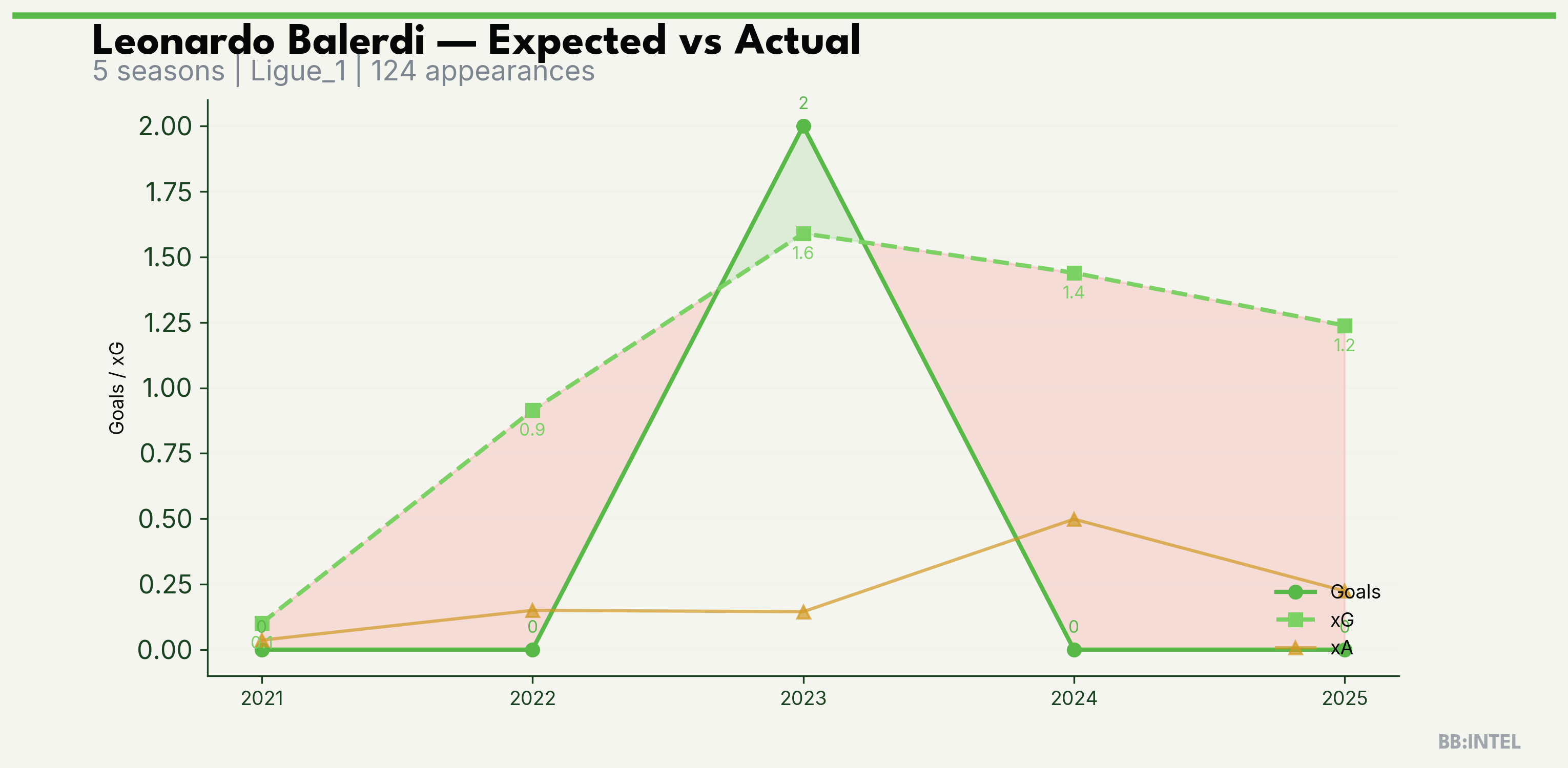 | 2024/2025 | Ligue_1 | 27 | 0 | 1.4 | 0.5 | 15 | -1.4 |