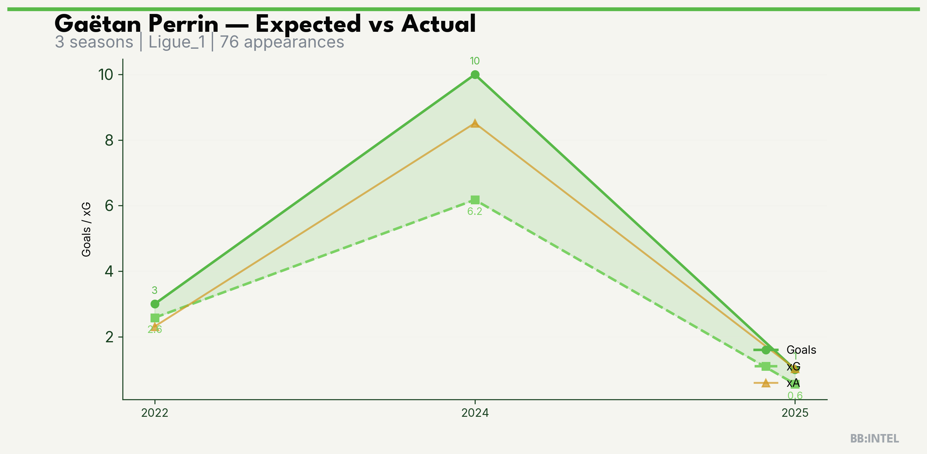 | 2025/2026 | Ligue_1 | 5 | 1 | 0.6 | 1.0 | 6 | +0.4 |
