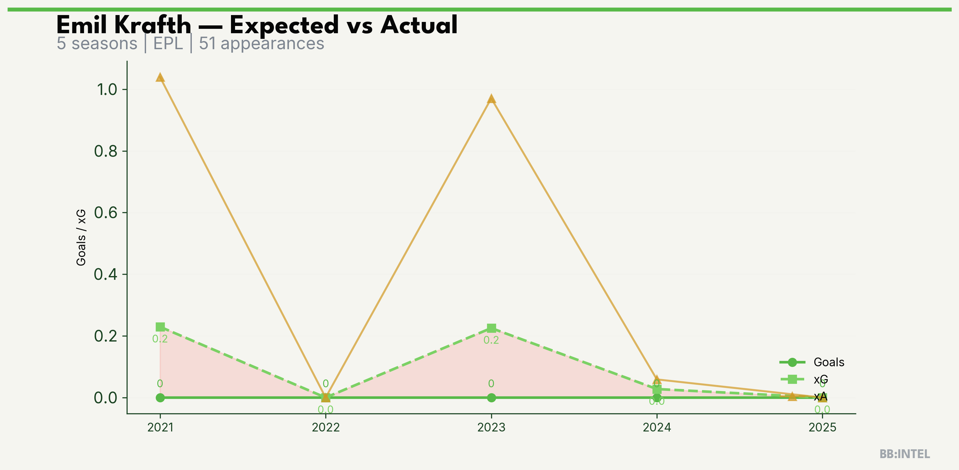 | 2024/2025 | EPL | 12 | 0 | 0.0 | 0.1 | 1 | -0.0 |