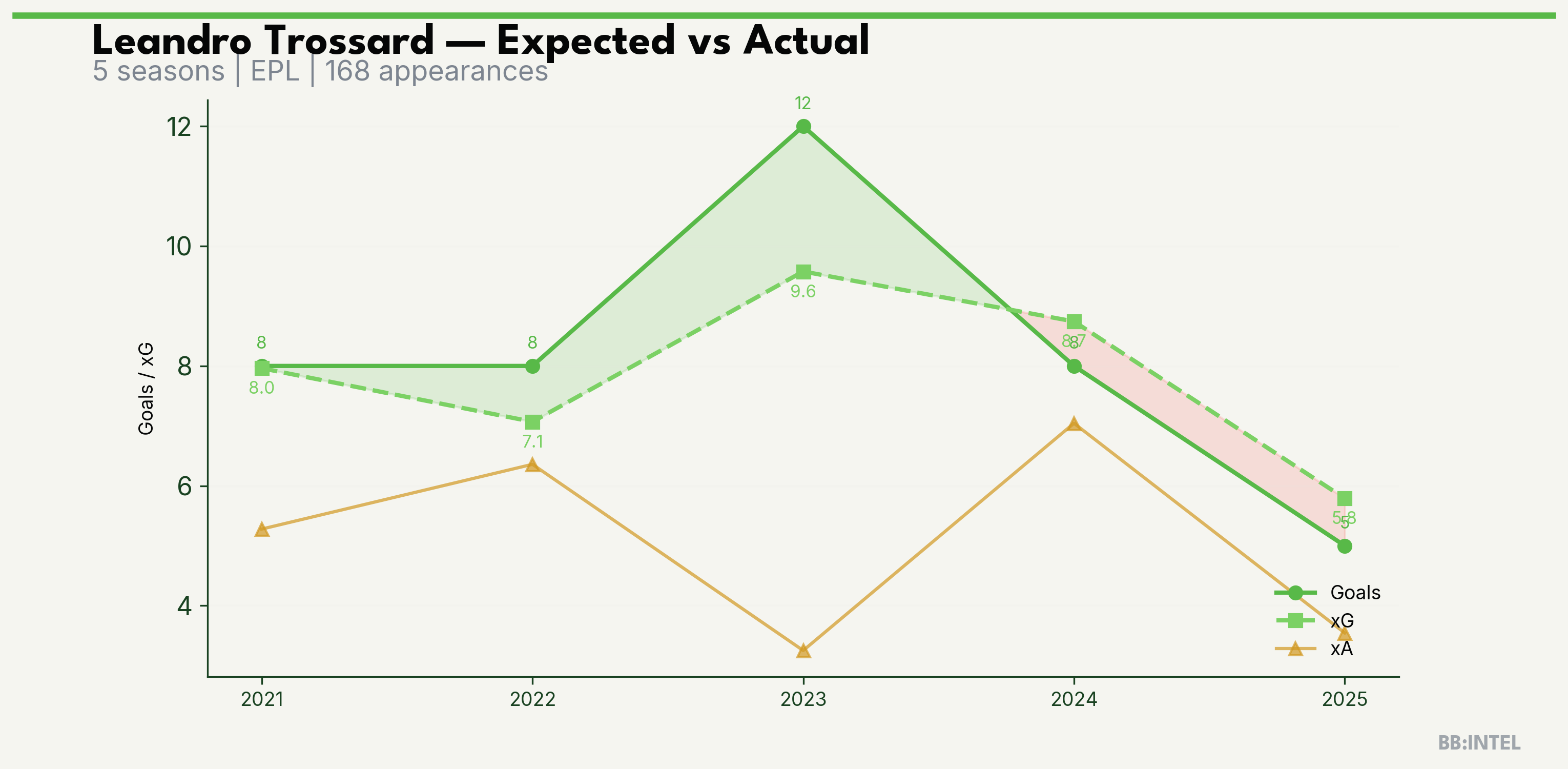 | 2024/2025 | EPL | 38 | 8 | 8.7 | 7.0 | 72 | -0.7 |