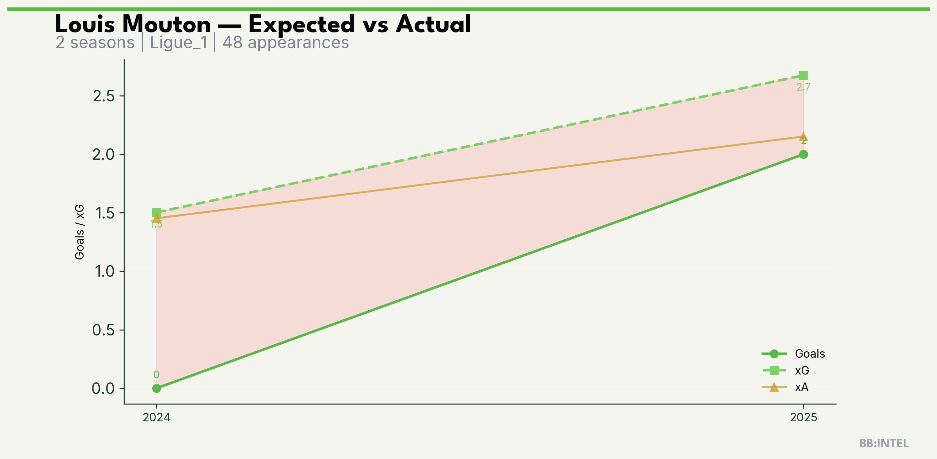 | 2025/2026 | Ligue_1 | 24 | 2 | 2.7 | 2.2 | 30 | -0.7 |