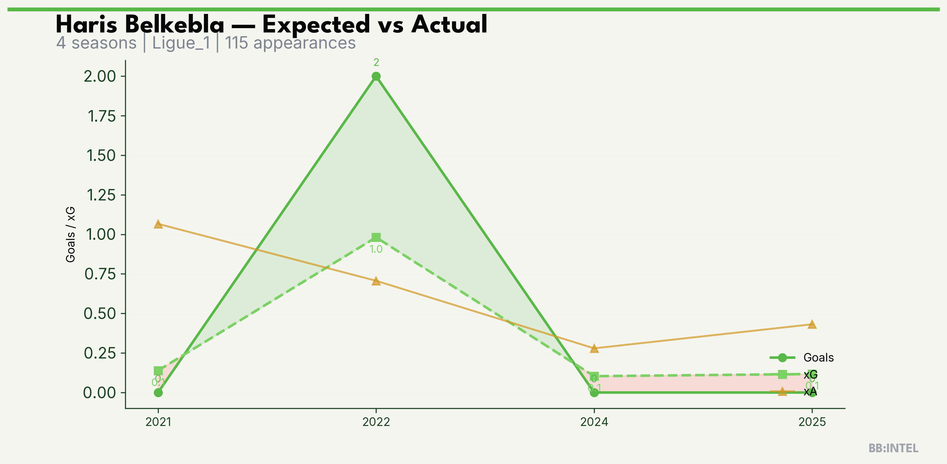 | 2022/2023 | Ligue_1 | 38 | 2 | 1.0 | 0.7 | 10 | +1.0 |