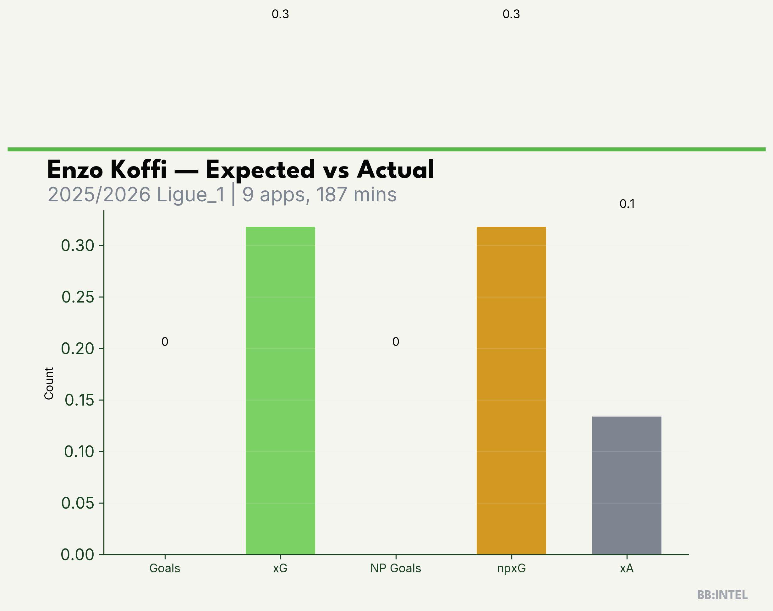 | 2025/2026 | Ligue_1 | 9 | 0 | 0.3 | 0.1 | 2 | -0.3 |