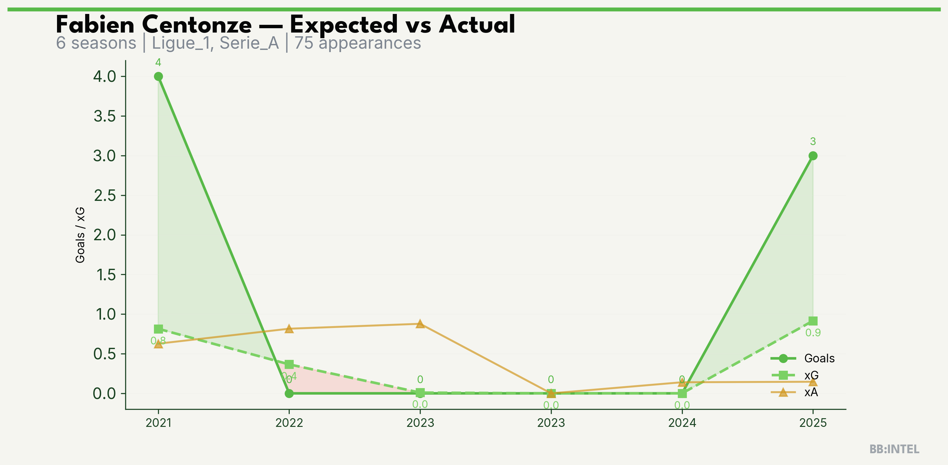 | 2025/2026 | Ligue_1 | 13 | 3 | 0.9 | 0.1 | 7 | +2.1 |