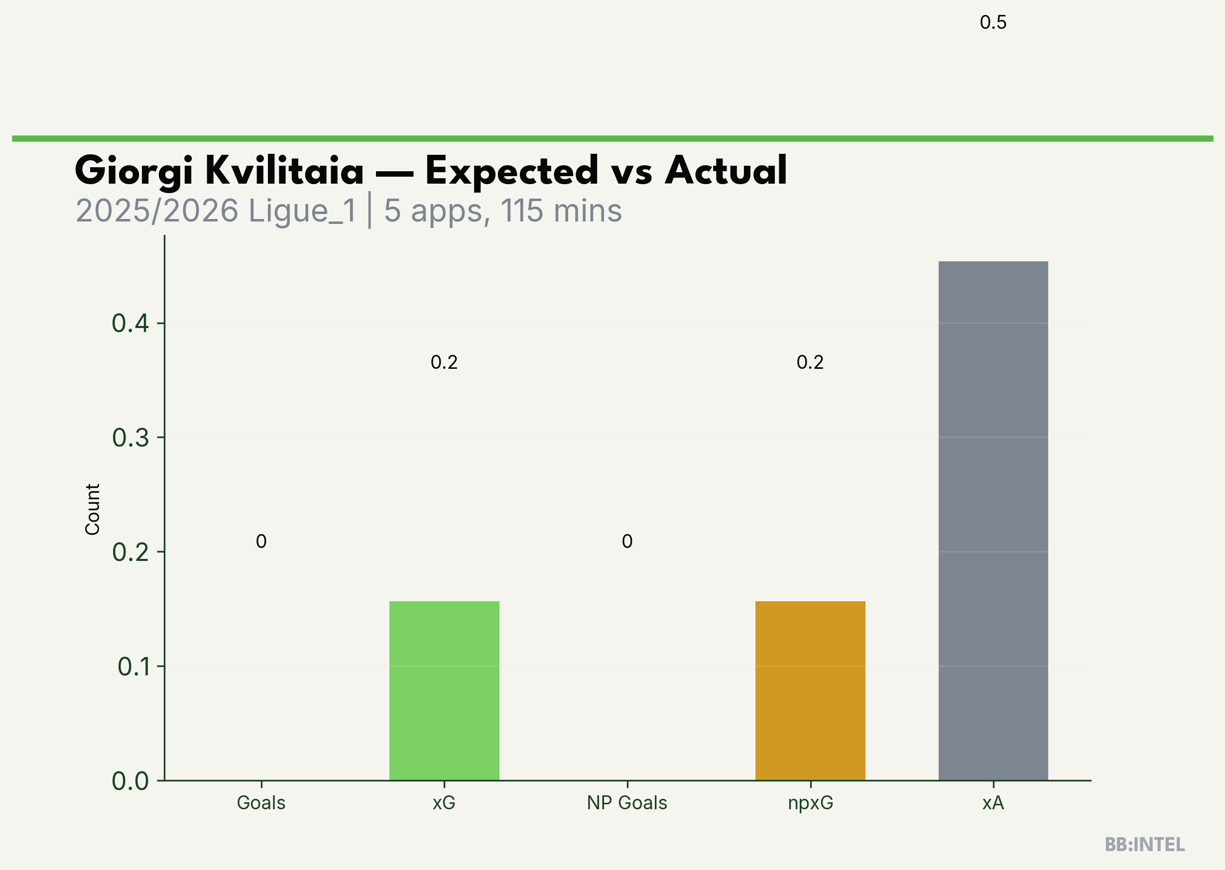 | 2025/2026 | Ligue_1 | 5 | 0 | 0.2 | 0.5 | 3 | -0.2 |