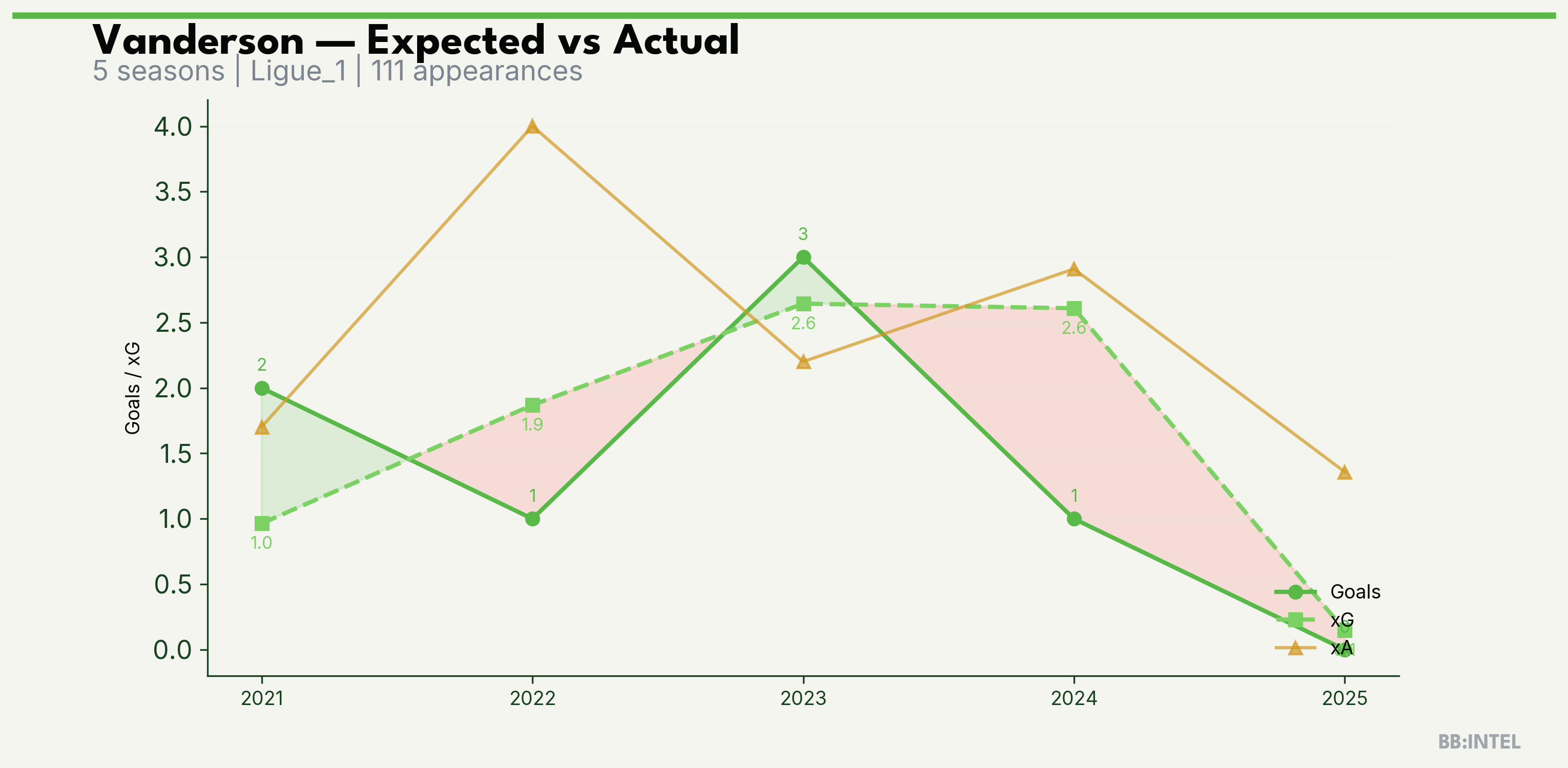 | 2025/2026 | Ligue_1 | 14 | 0 | 0.1 | 1.4 | 3 | -0.1 |