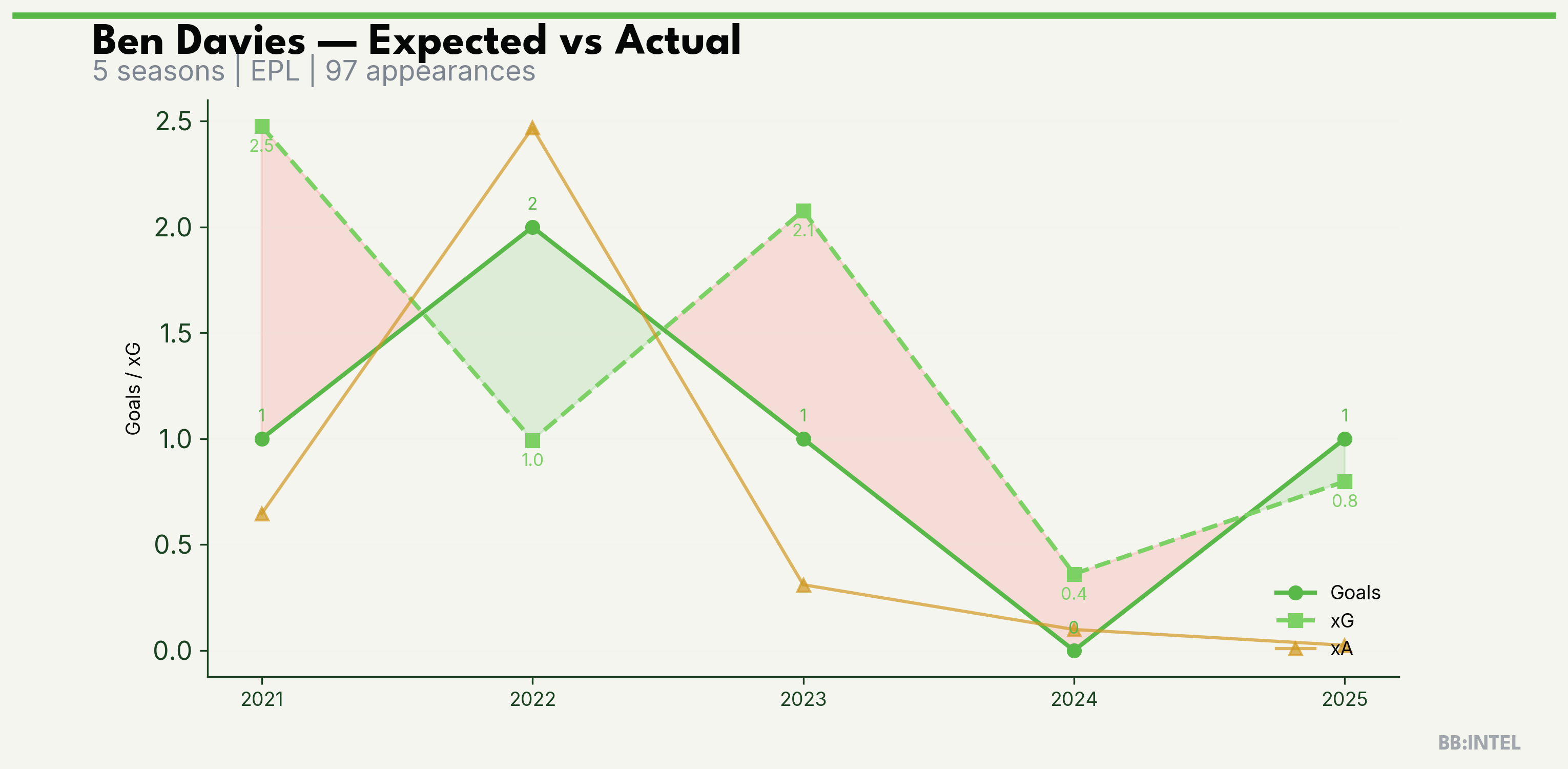 | 2025/2026 | EPL | 3 | 1 | 0.8 | 0.0 | 2 | +0.2 |