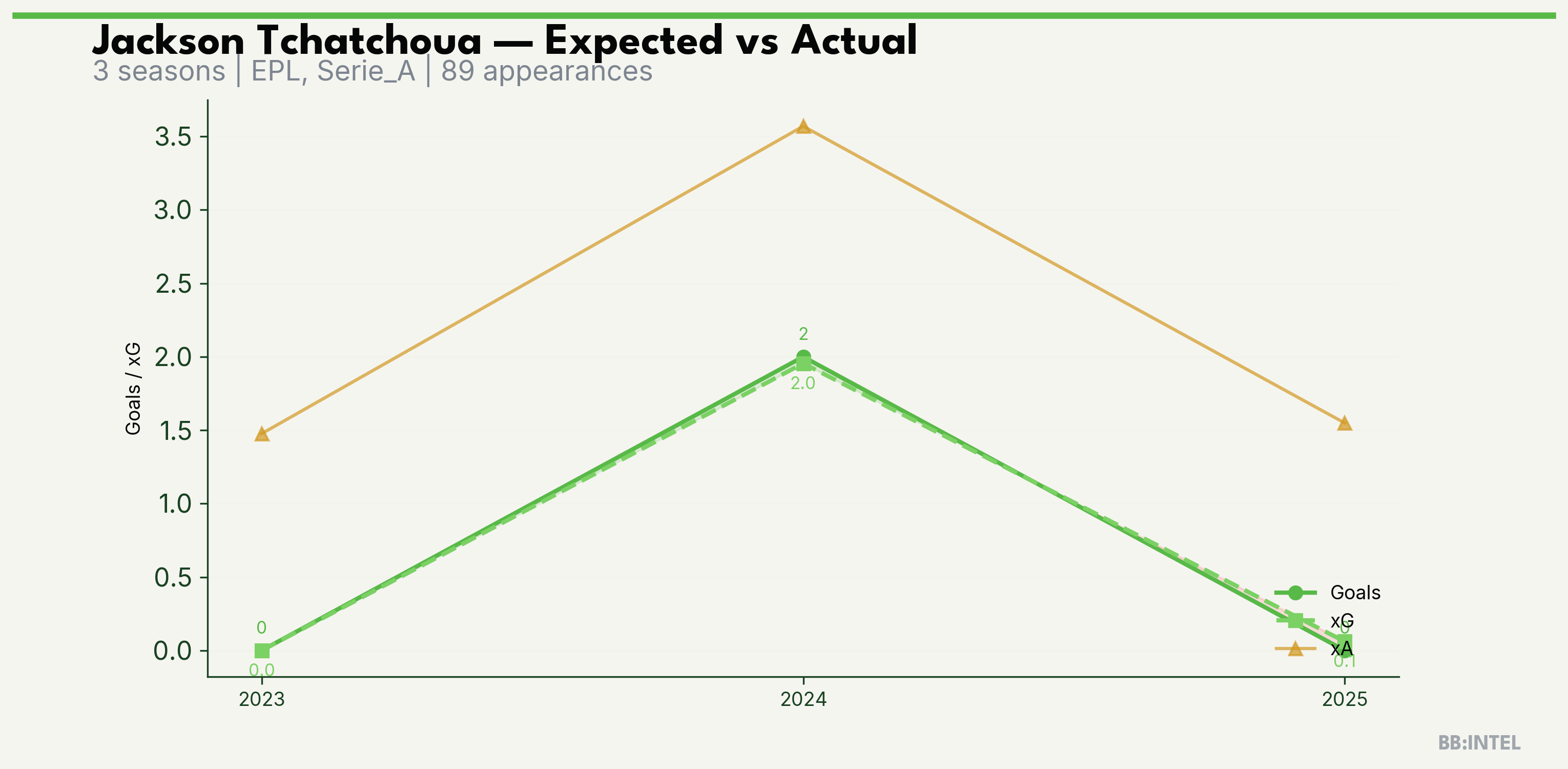 | 2024/2025 | Serie_A | 36 | 2 | 2.0 | 3.6 | 18 | +0.0 |