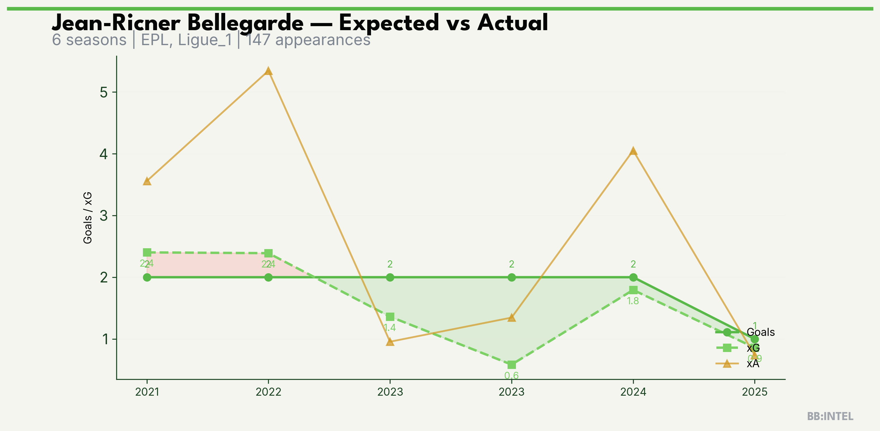 | 2025/2026 | EPL | 21 | 1 | 0.9 | 0.7 | 20 | +0.1 |