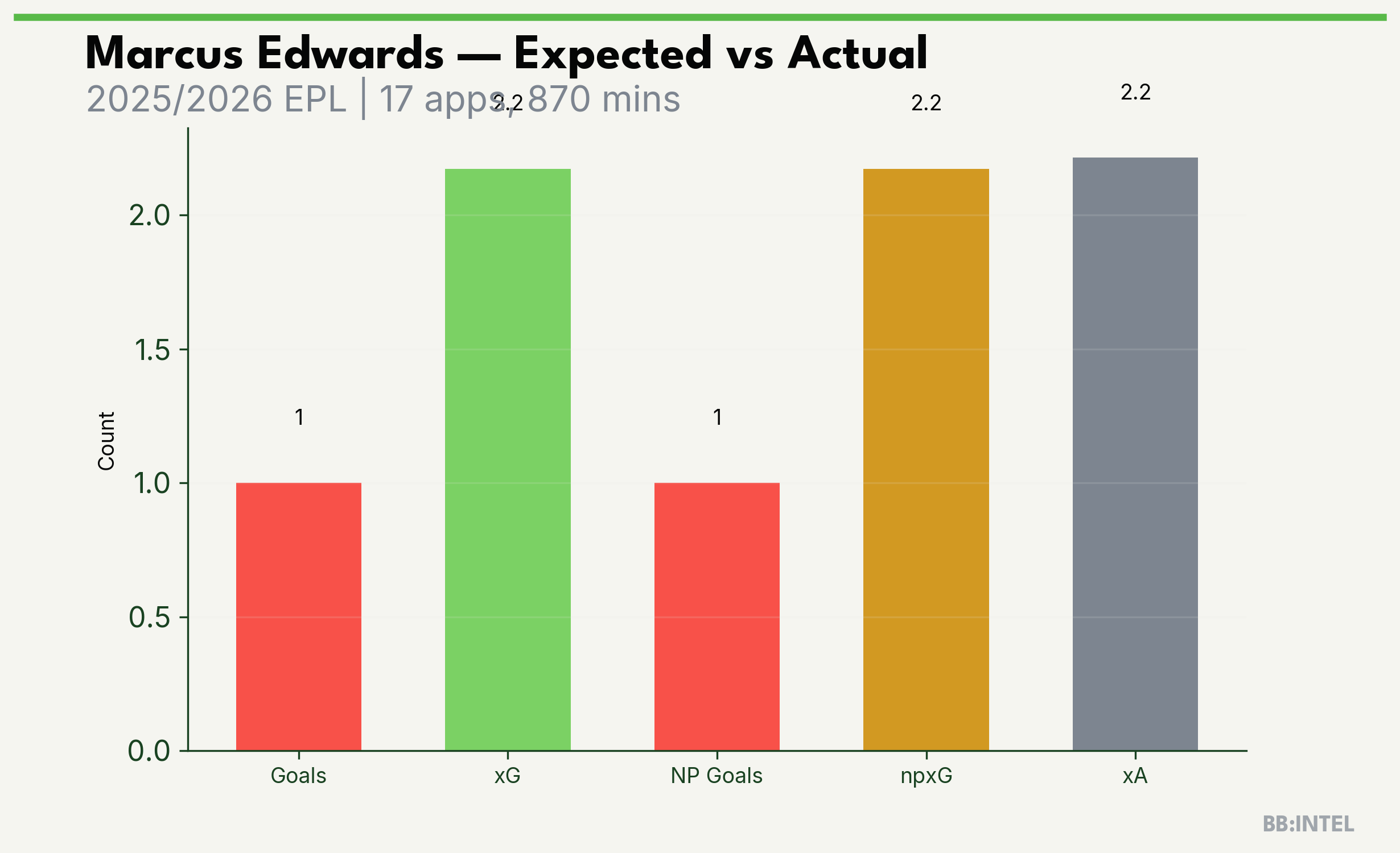| 2025/2026 | EPL | 17 | 1 | 2.2 | 2.2 | 20 | -1.2 |