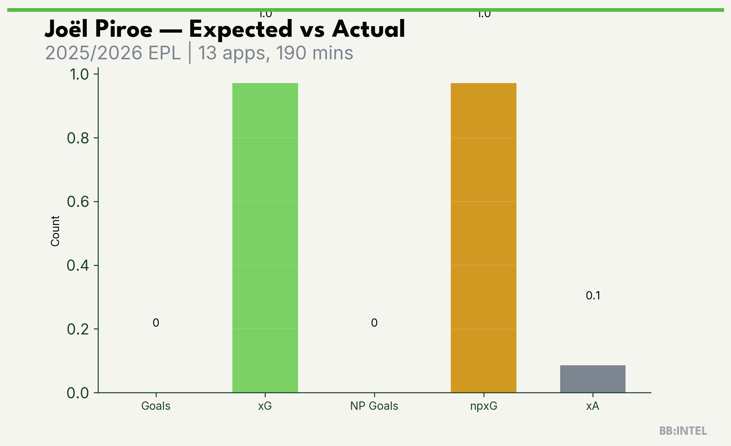 | 2025/2026 | EPL | 13 | 0 | 1.0 | 0.1 | 11 | -1.0 |