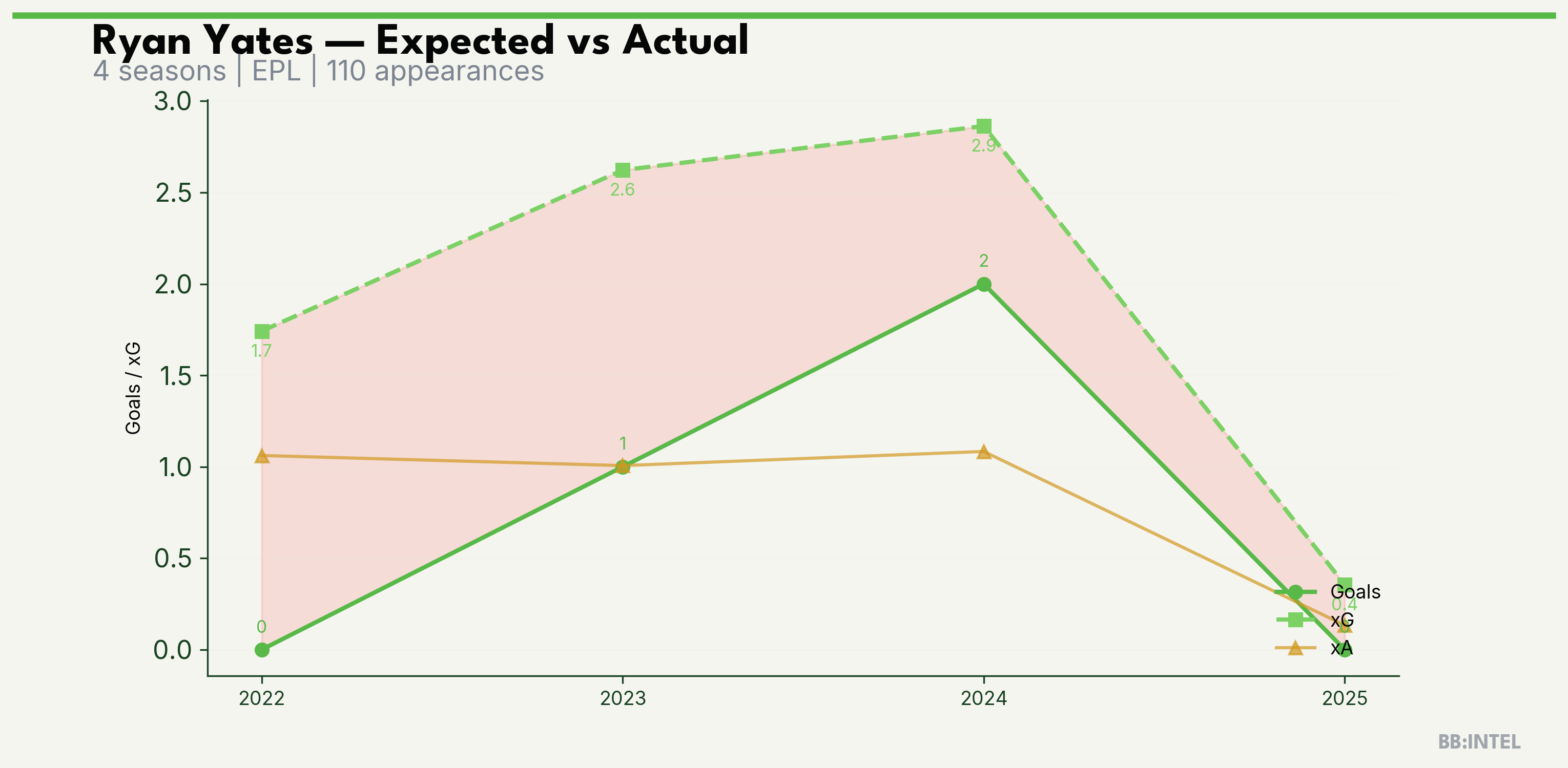 | 2025/2026 | EPL | 14 | 0 | 0.4 | 0.1 | 4 | -0.4 |