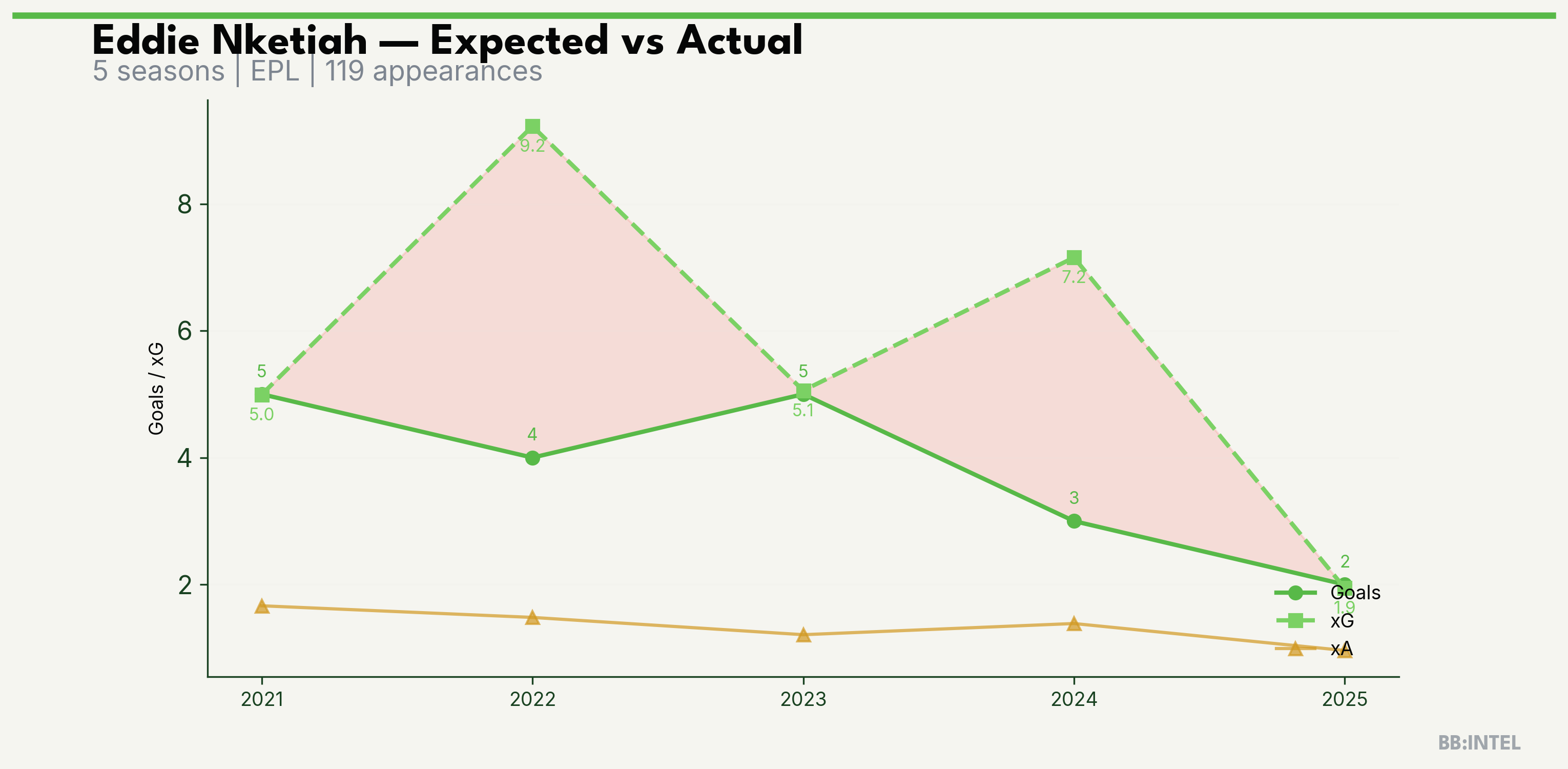| 2025/2026 | EPL | 12 | 2 | 1.9 | 1.0 | 15 | +0.1 |