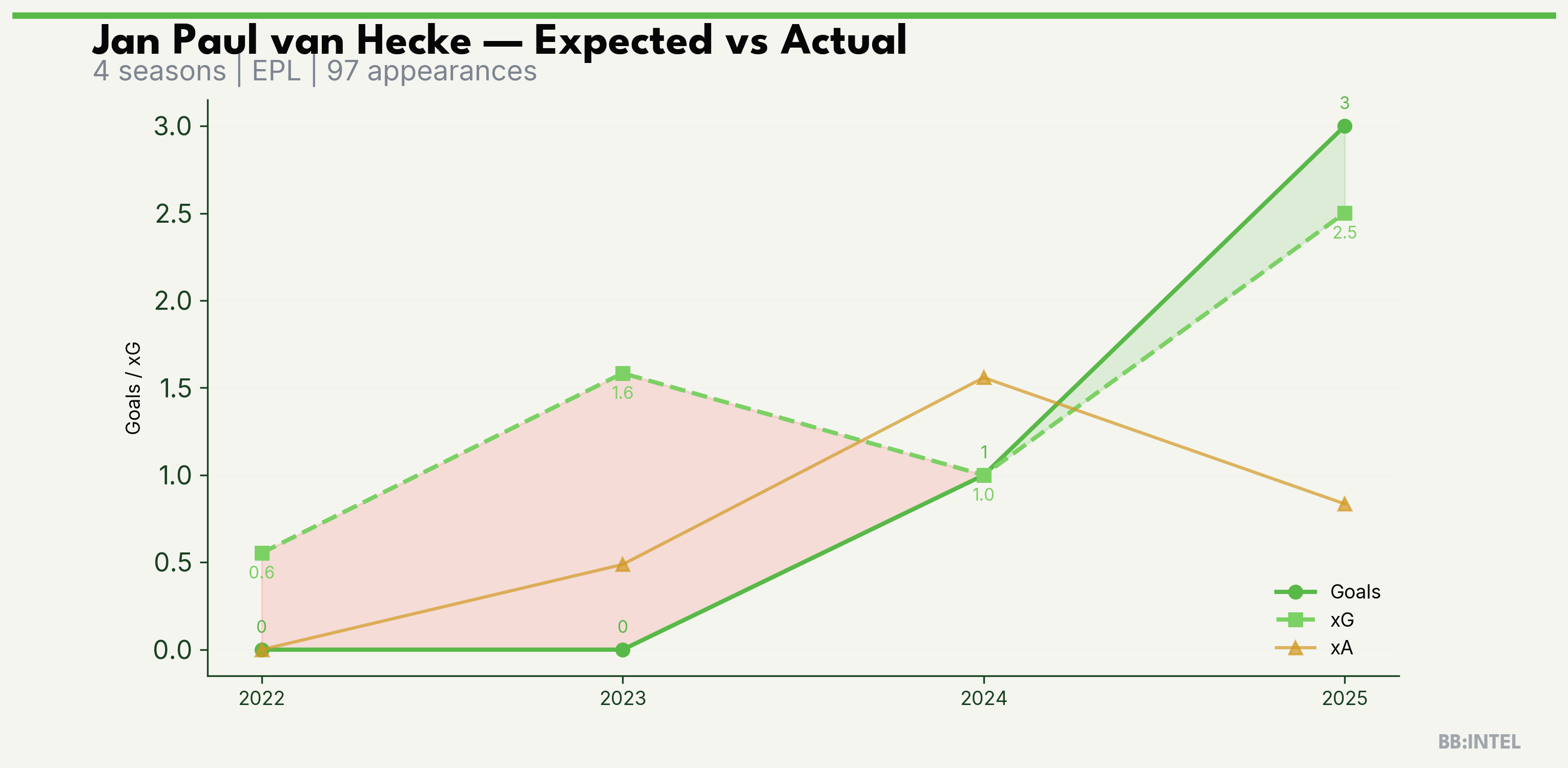| 2025/2026 | EPL | 27 | 3 | 2.5 | 0.8 | 17 | +0.5 |