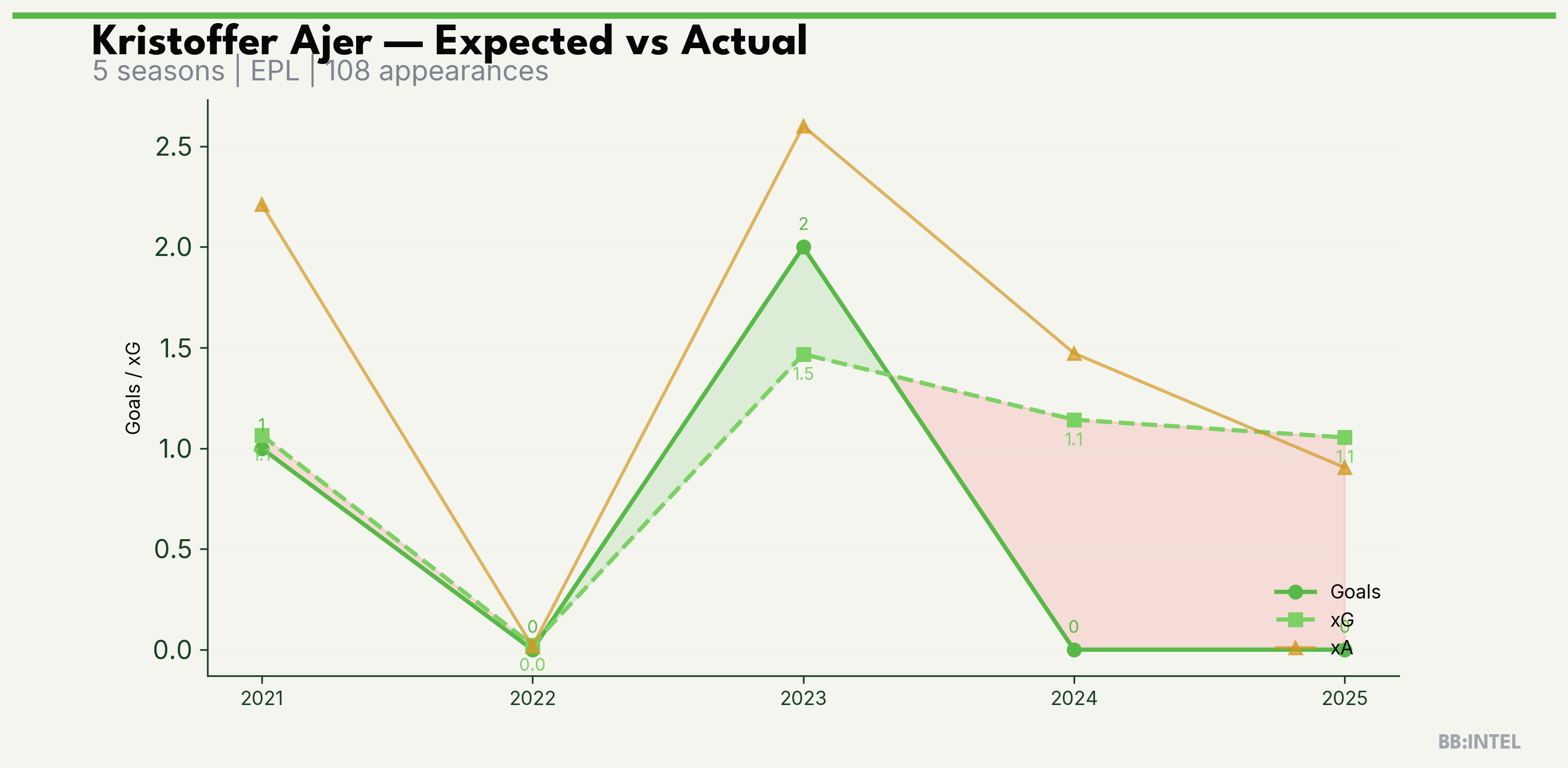 | 2025/2026 | EPL | 23 | 0 | 1.1 | 0.9 | 10 | -1.1 |