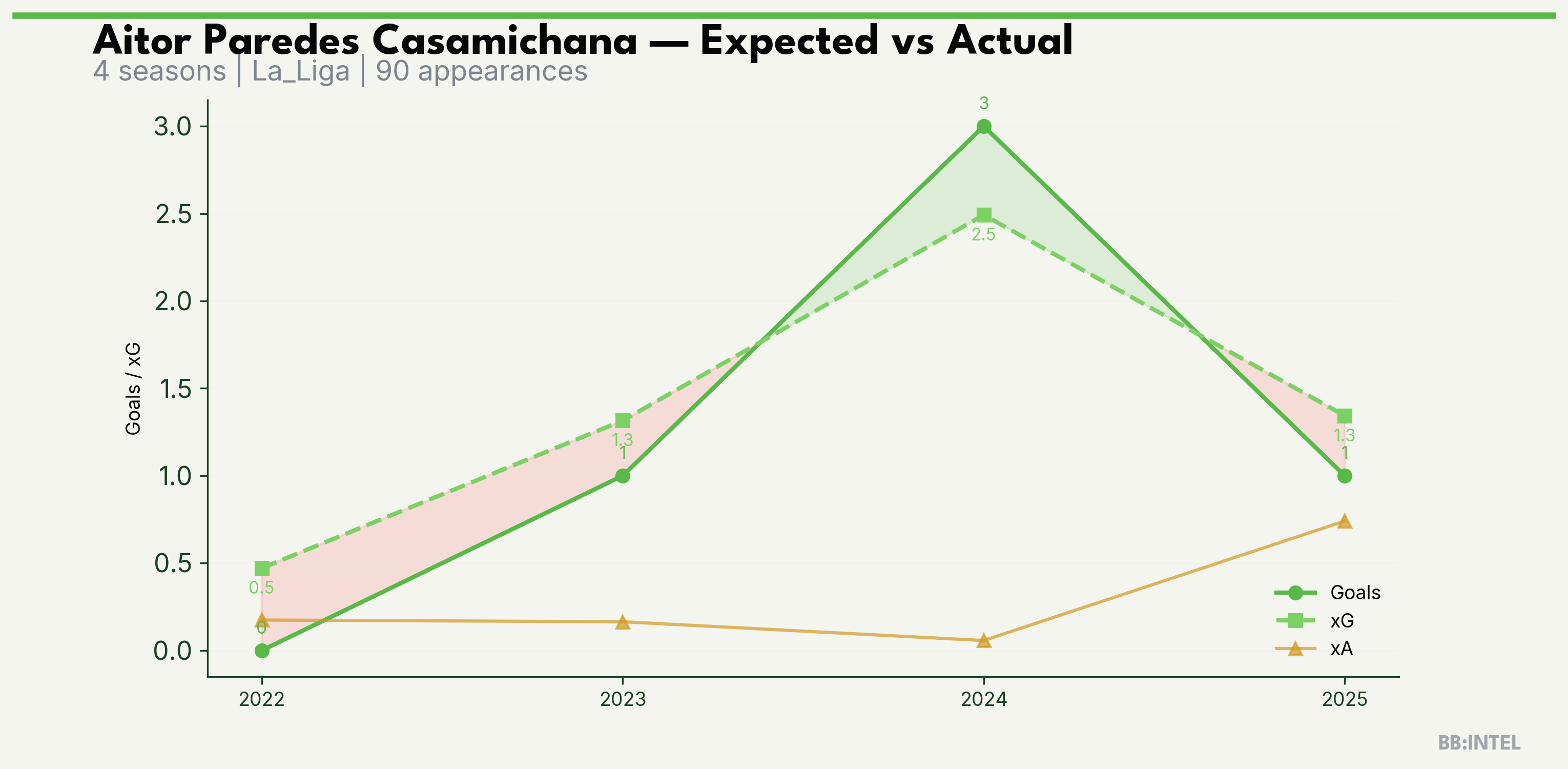 | 2025/2026 | La_Liga | 17 | 1 | 1.3 | 0.7 | 12 | -0.3 |