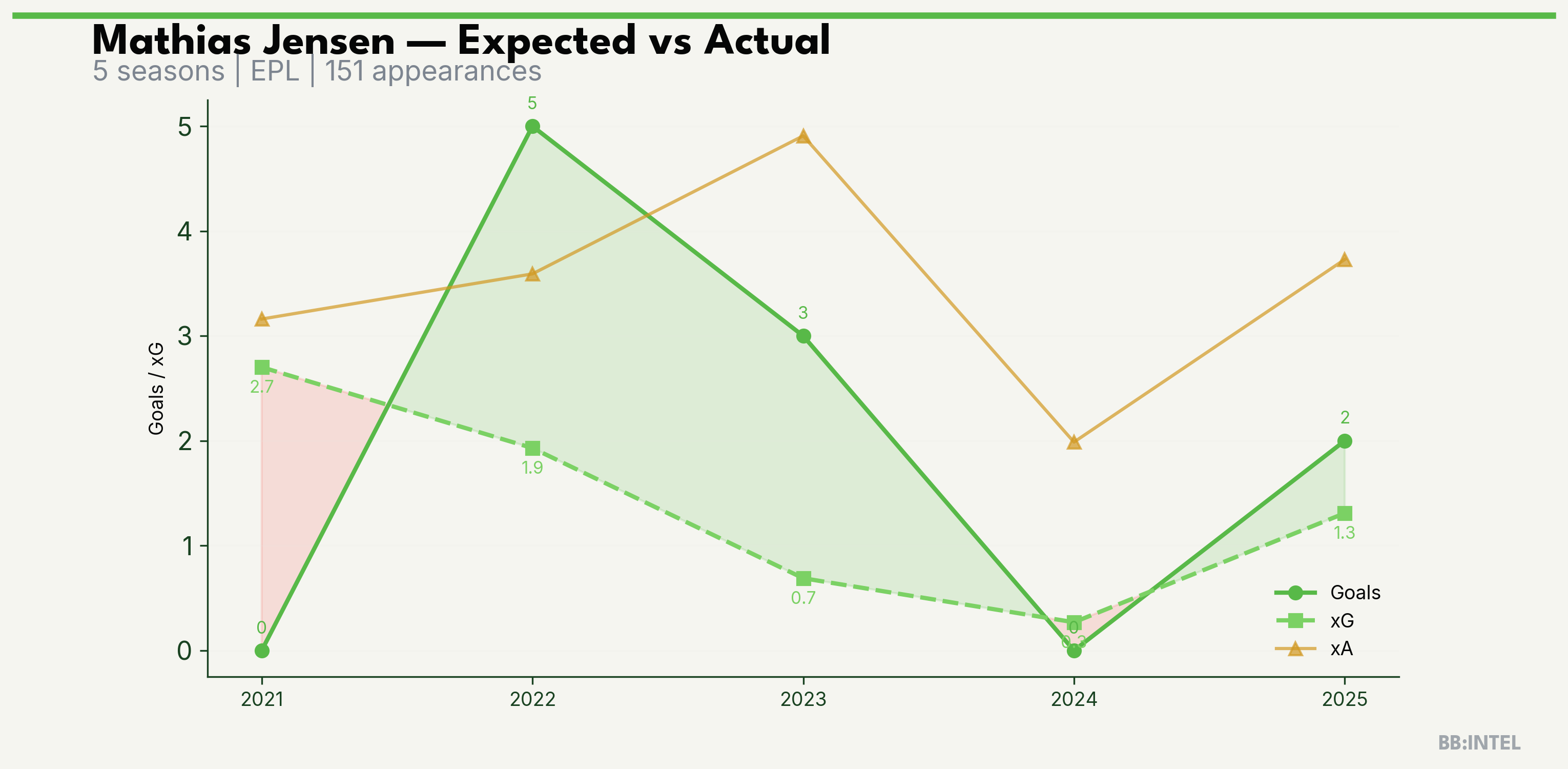 | 2025/2026 | EPL | 27 | 2 | 1.3 | 3.7 | 22 | +0.7 |