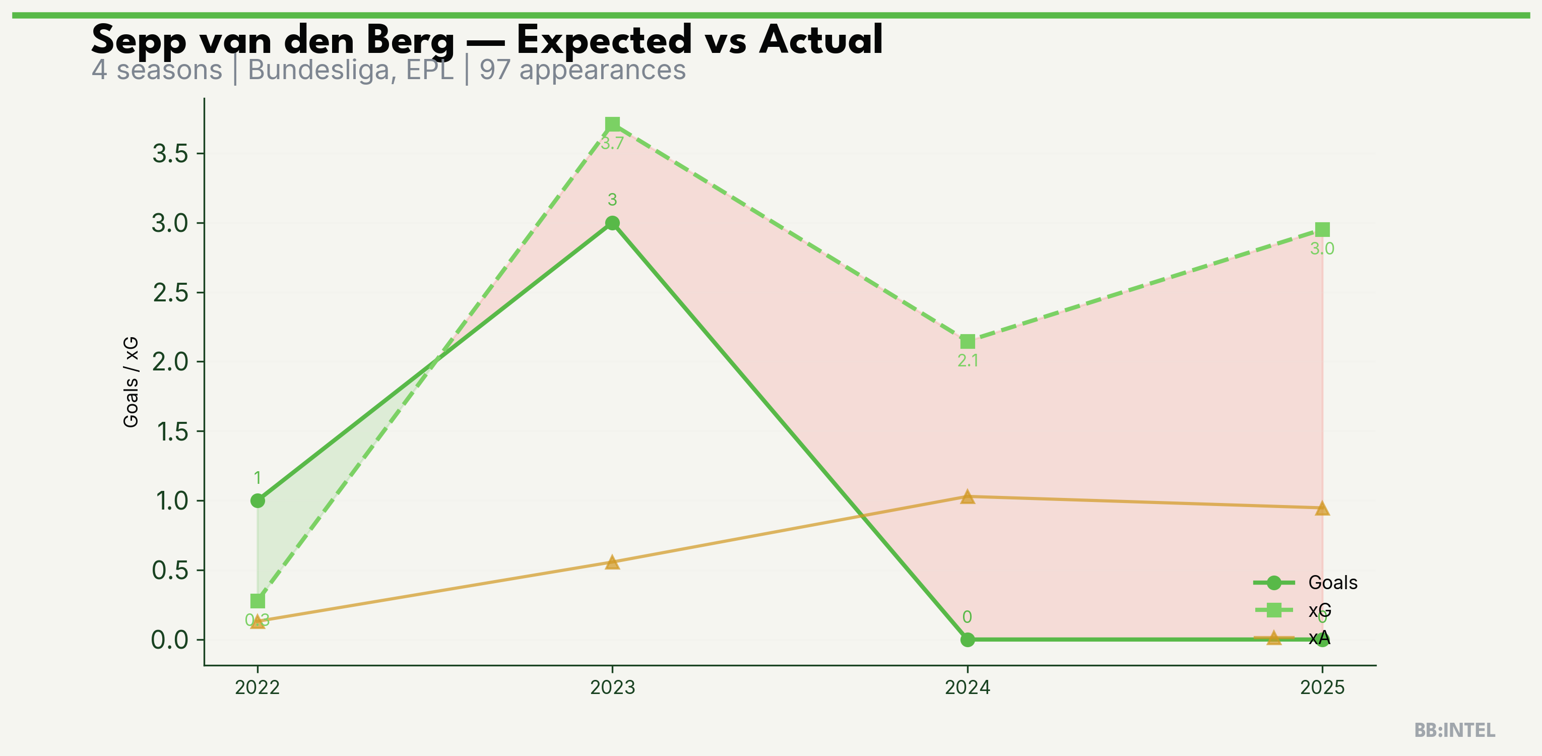 | 2023/2024 | Bundesliga | 33 | 3 | 3.7 | 0.6 | 25 | -0.7 |