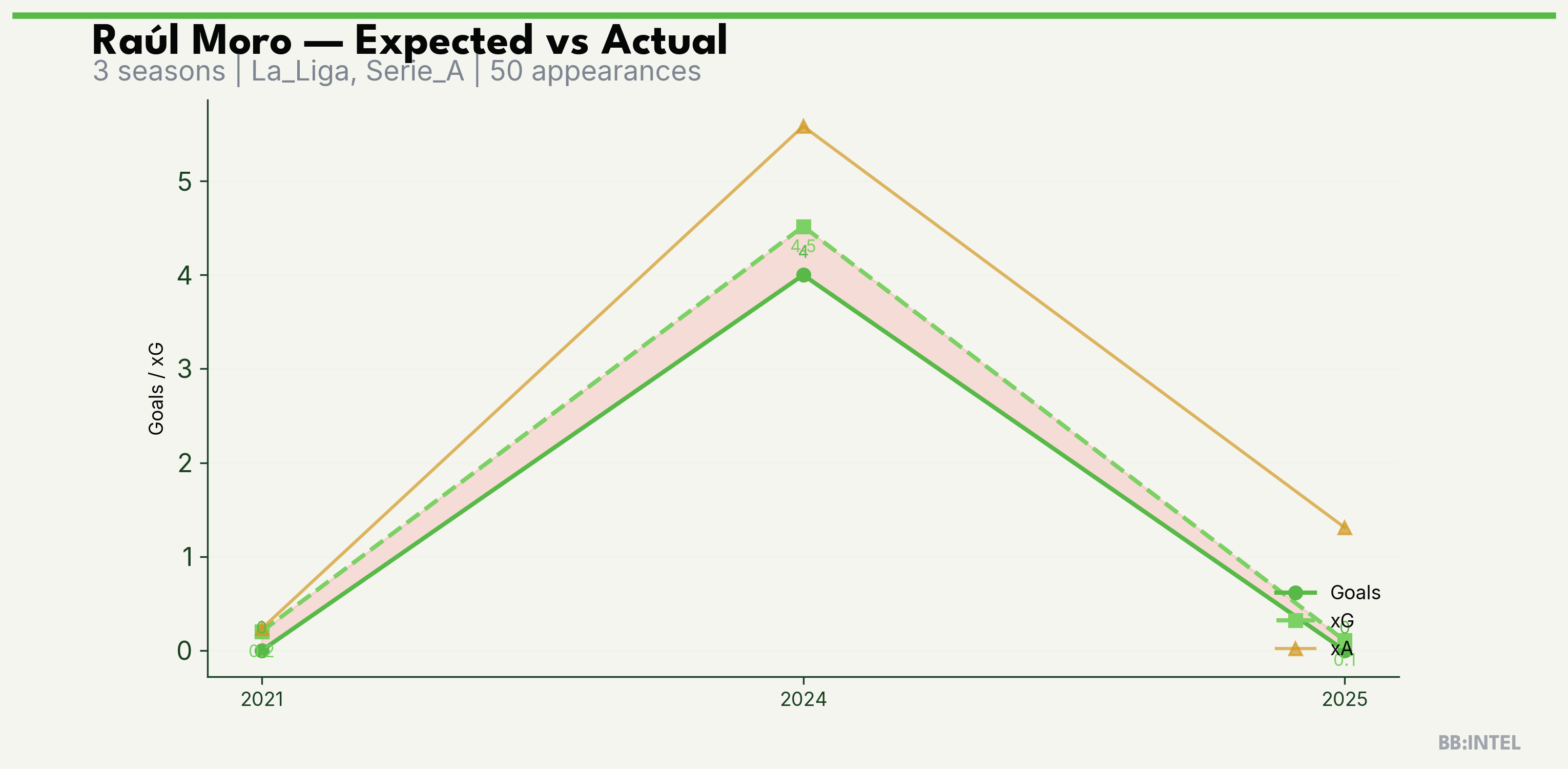 | 2025/2026 | La_Liga | 6 | 0 | 0.1 | 1.3 | 3 | -0.1 |